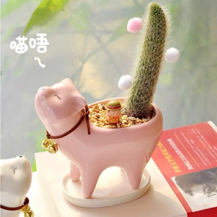 情绪稳定小花盆九尾狐多肉仙人掌盆栽创意摆件陶瓷网红绿植桌面