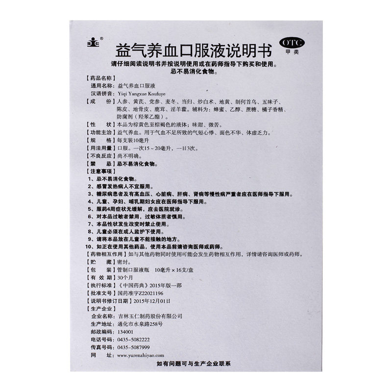 【玉仁】益气养血口服液10ml*16支/盒气血不足体虚乏力体虚气短心悸