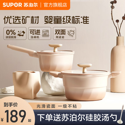 苏泊尔陶瓷奶锅不粘锅婴儿小锅家用宝宝专用辅食锅蒸锅泡面锅汤锅