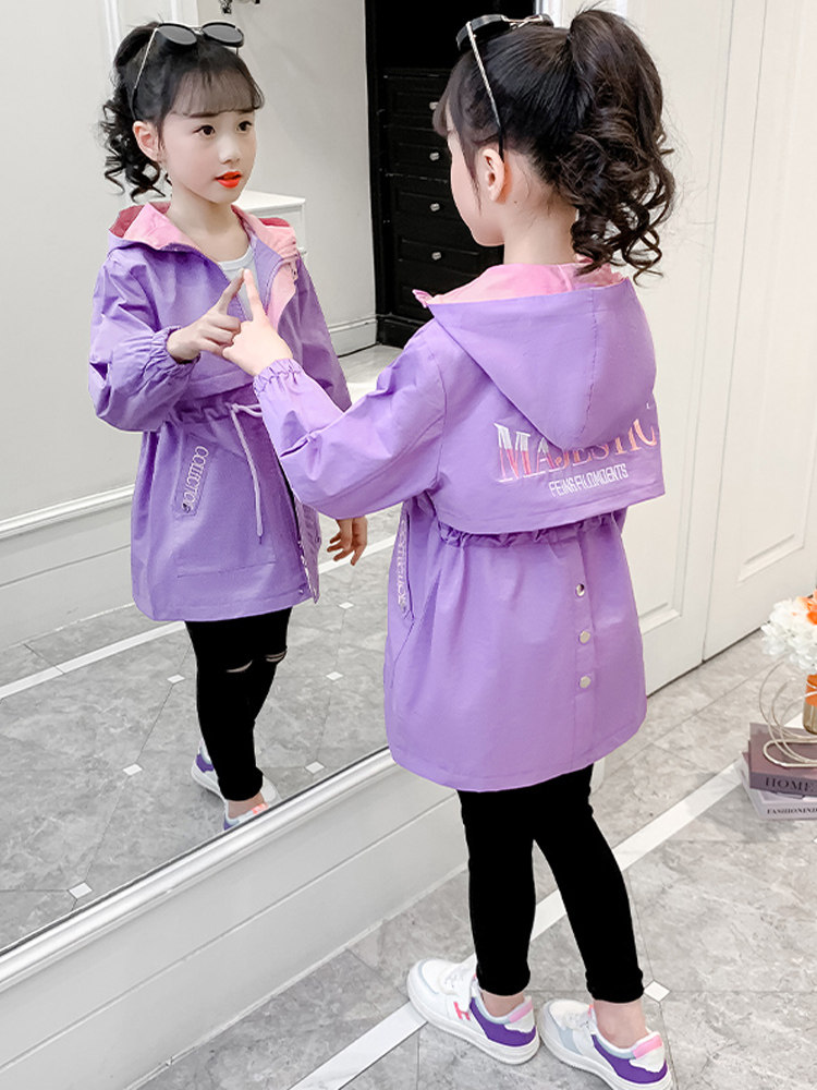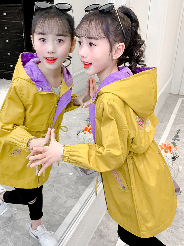 女童风衣外套儿童春装女孩洋气派克服2025新款韩版连帽上衣中长款