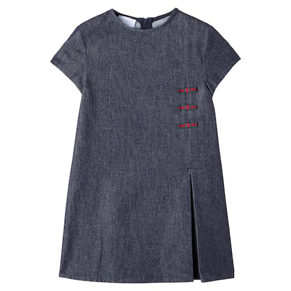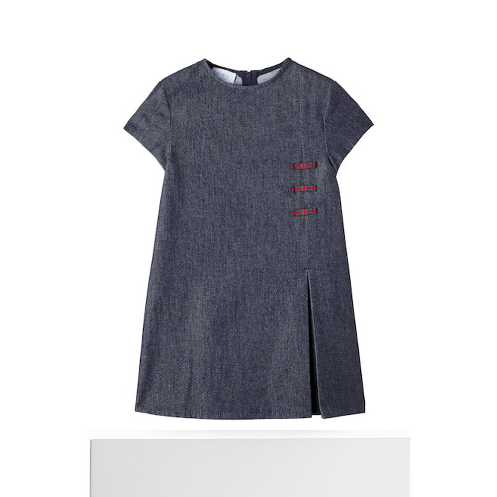 1h可退 香港直邮Gucci 古驰 女童 网纹褶裥牛仔连衣裙童装