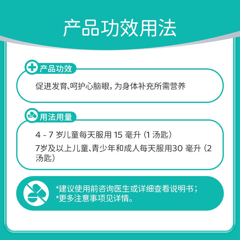 欧洲直邮德国双心儿童Omega3深海鱼油DHA果味口服液250ml维生素