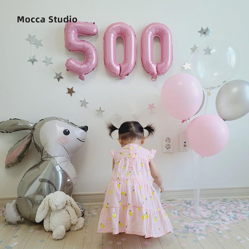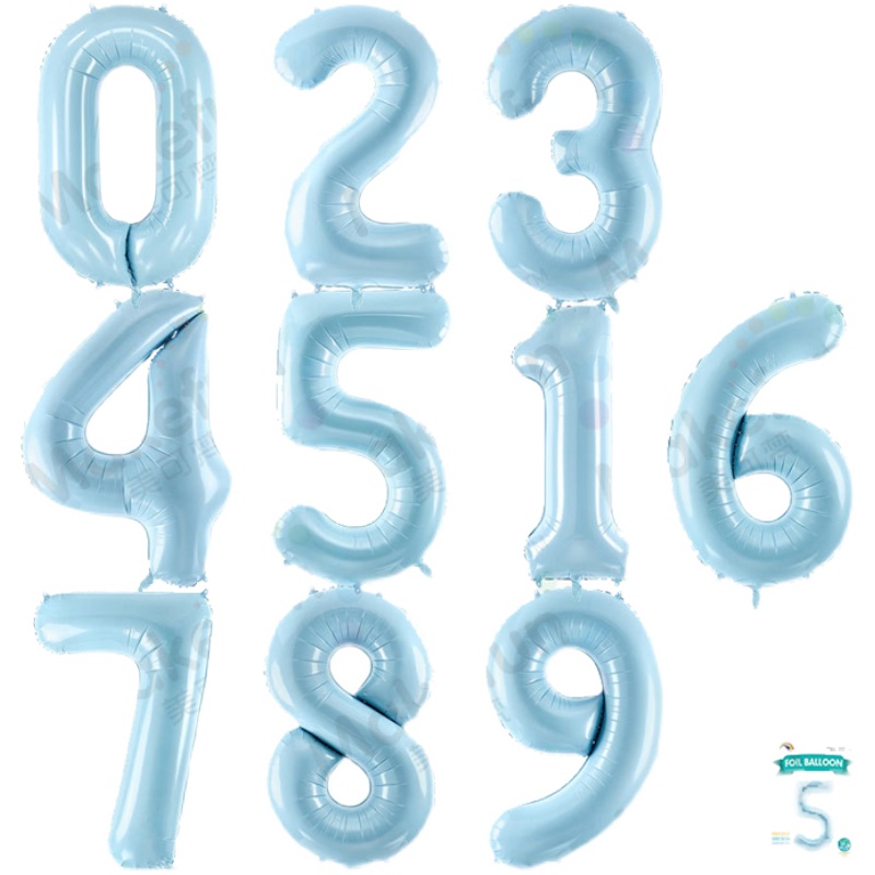 16寸小号数字铝膜气球儿童宝宝周岁生日装饰场景布置道具珠光粉蓝