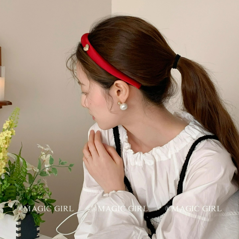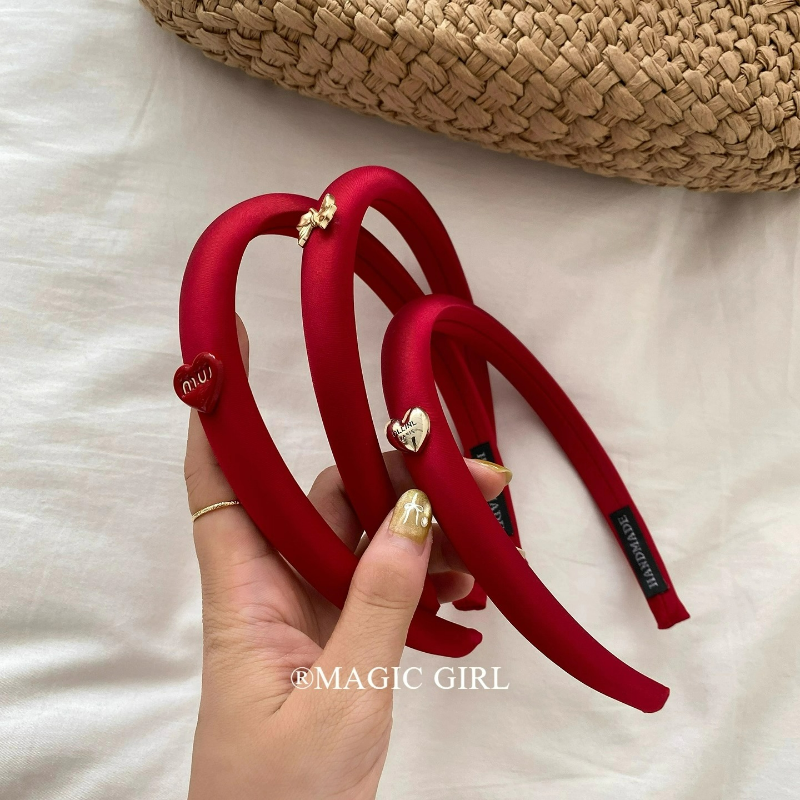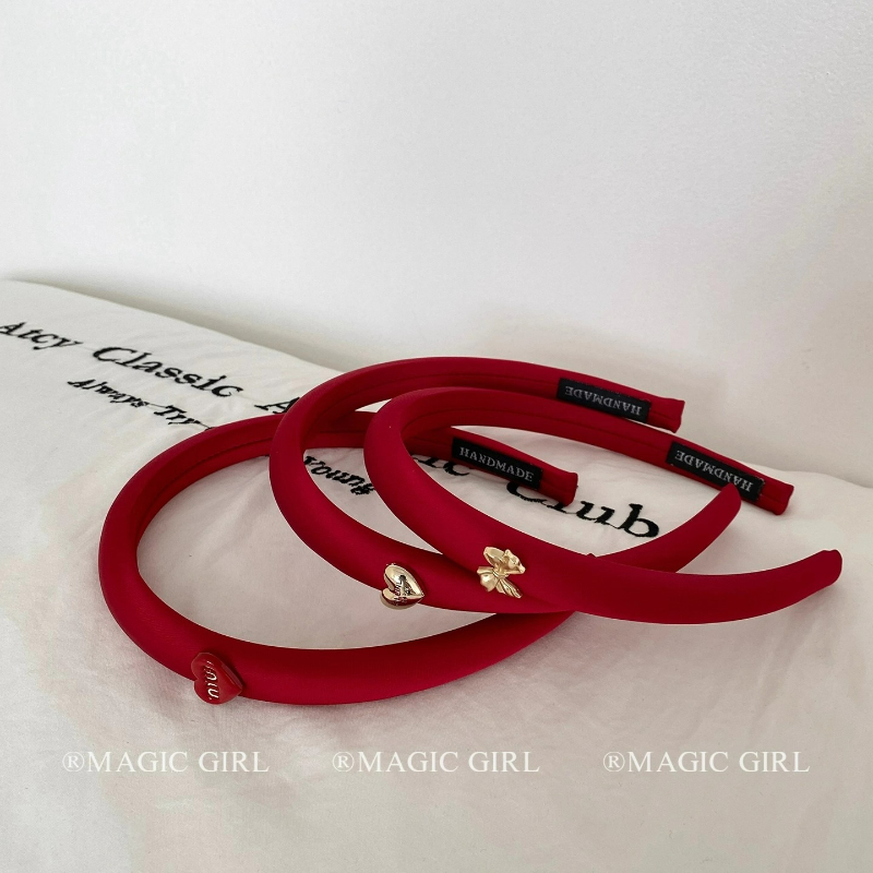 复古金标蝴蝶结爱心红色缎面发箍女高颅顶洗脸压发卡日常外戴头箍