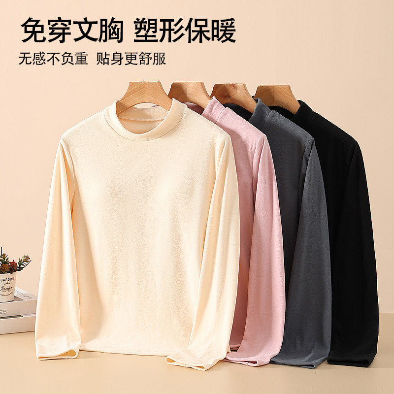 德绒保暖内衣秋冬立领半高领加绒打底衫女带胸垫一体上衣长袖秋衣