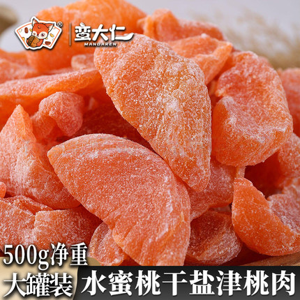 水蜜桃干盐津桃肉500g罐装无核桃子干果蜜饯果脯酸甜即食小零食