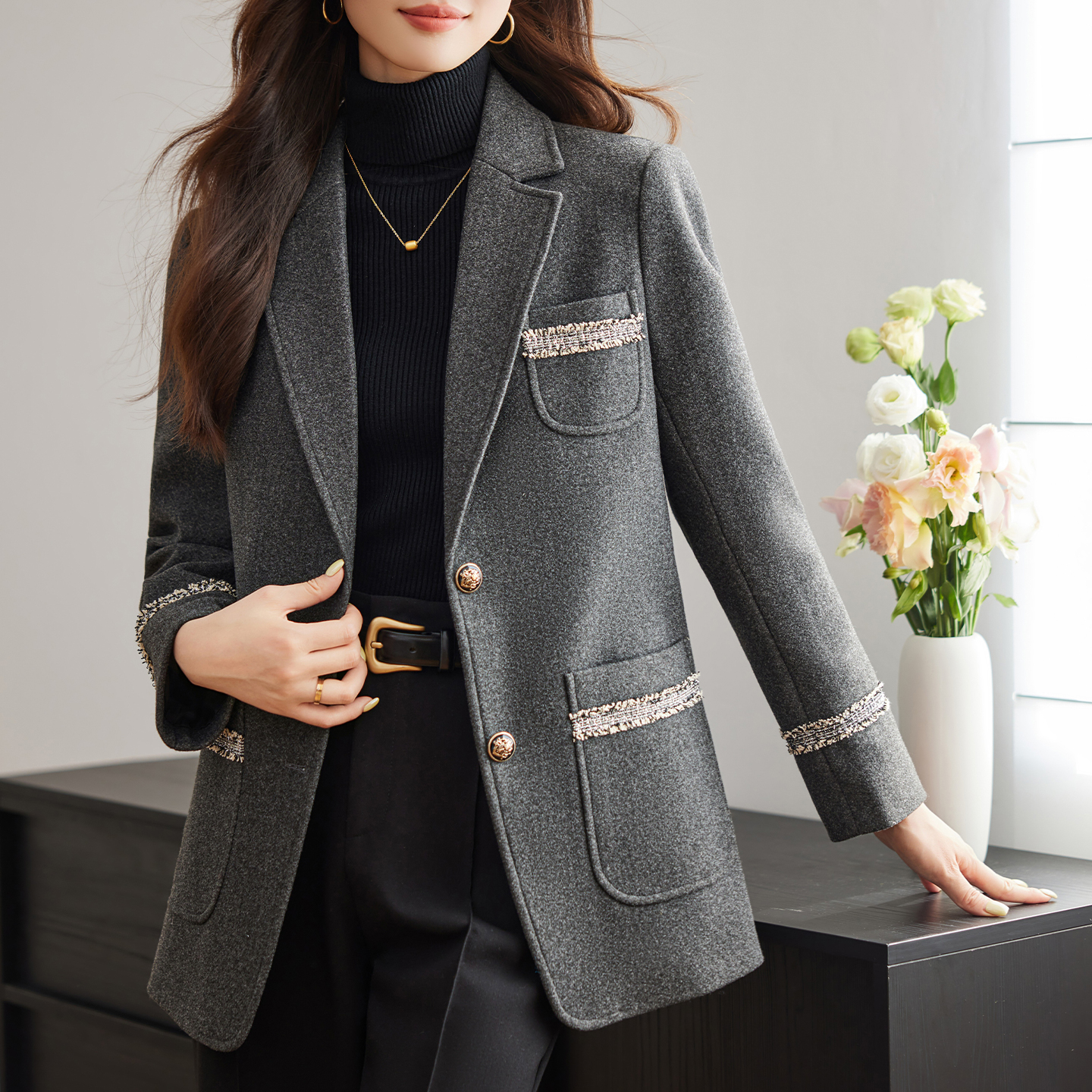 恒源祥冬季女士格子西装外套修身显瘦西装领短外套女装品牌小个子