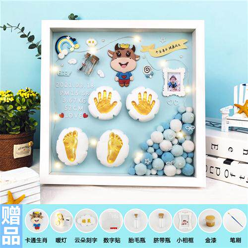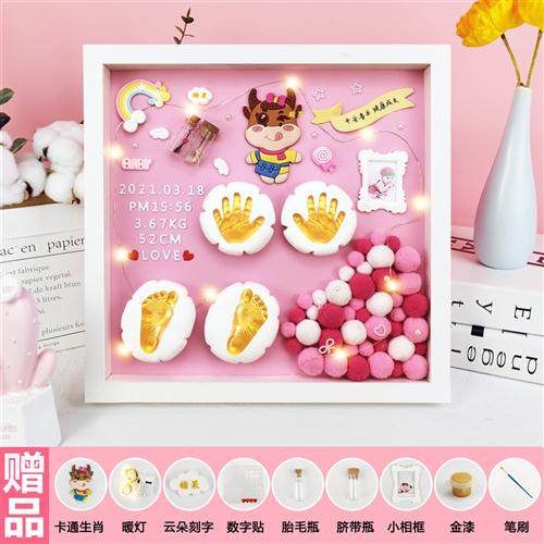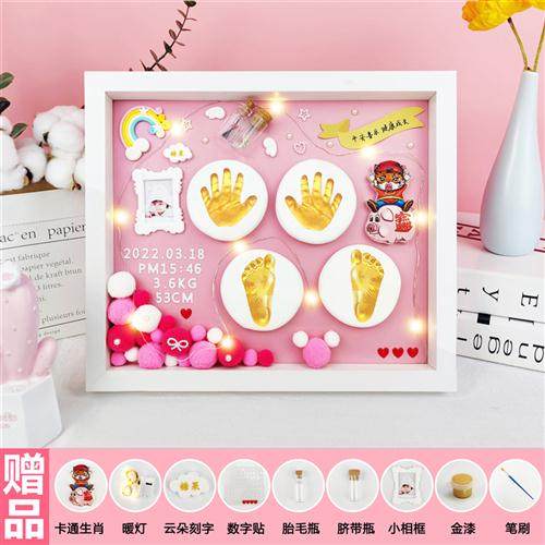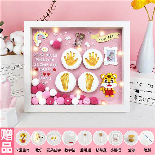 极速宝宝满e月手足印胎毛纪念品婴儿手足脚印手印泥相框百天手脚
