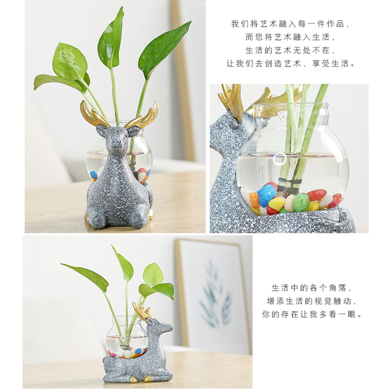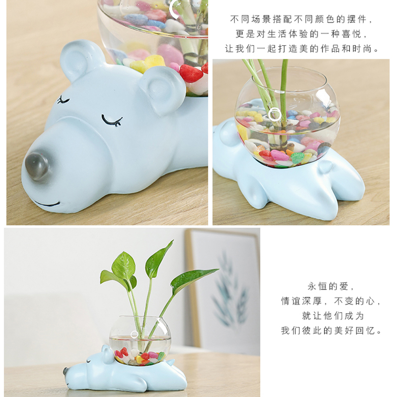 宇轩创意玻璃摆件动物小花器花盆茶桌绿萝花插花瓶陶瓷水培容器架