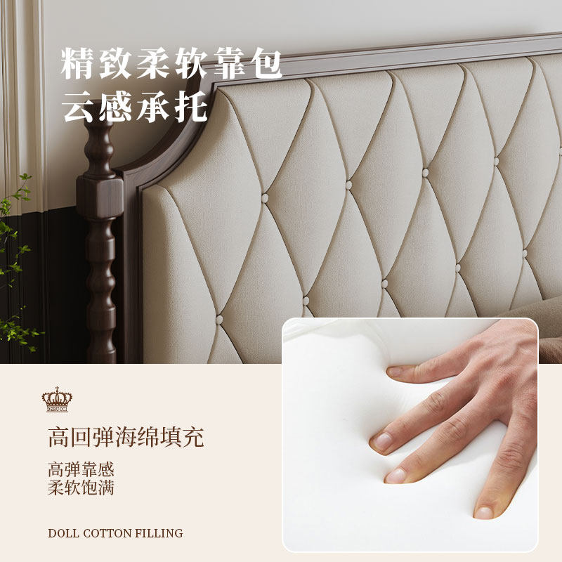 慕思旗舰店全实木黑胡桃色金檀木床主卧复古风卧室大床中古风床架