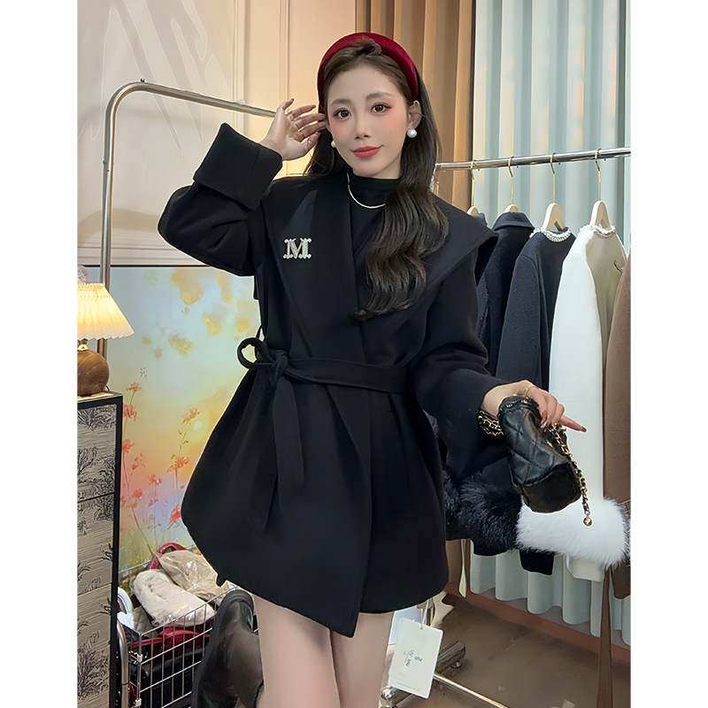 BULE蓝色星球冬季呢子大衣女中长款港味轻熟风网红爆款毛呢外套潮