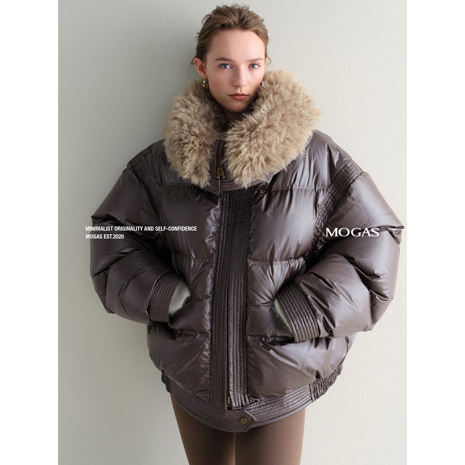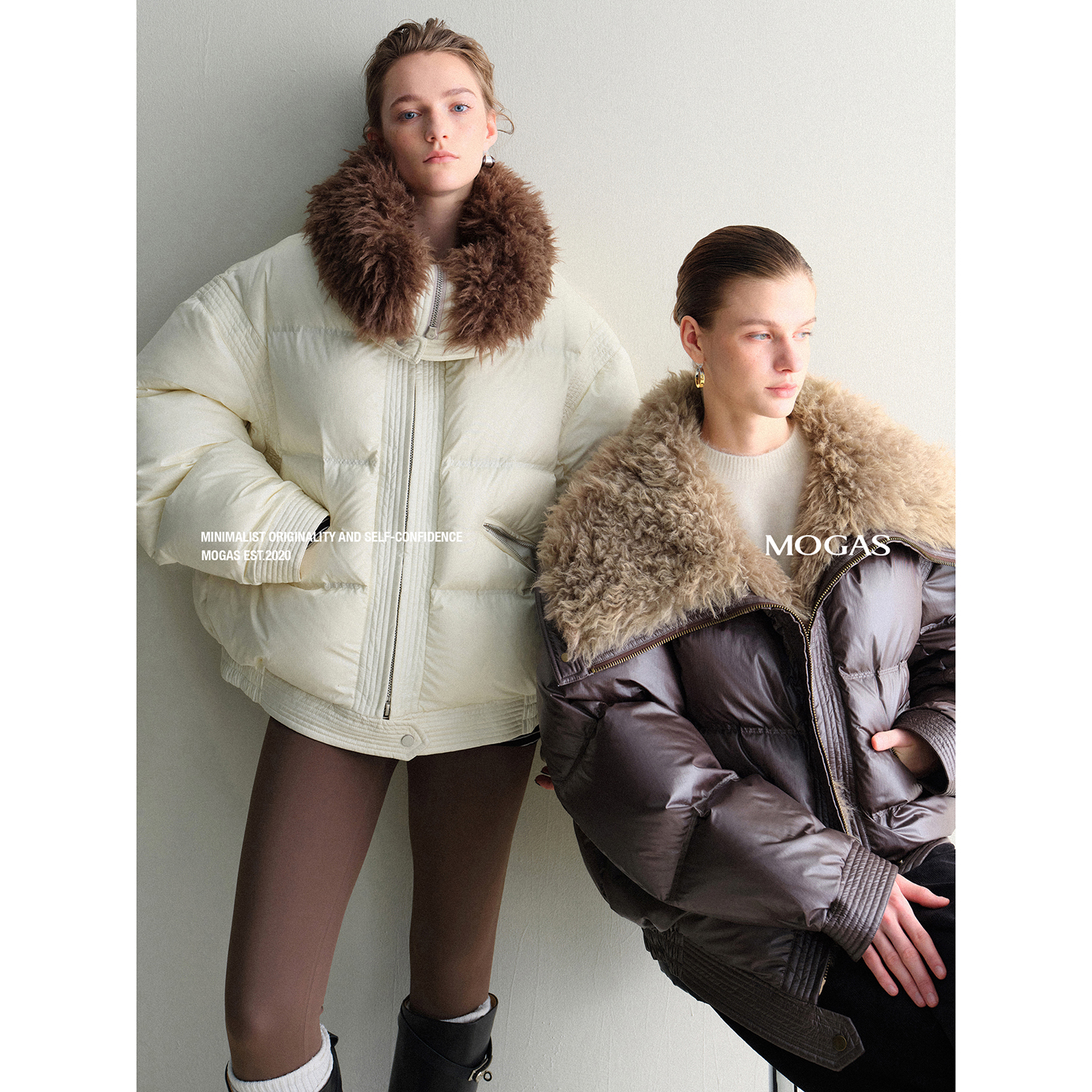Mogas一件过冬 进口95波兰白鸭绒环葆托卡卷卷毛短面包羽绒服外套