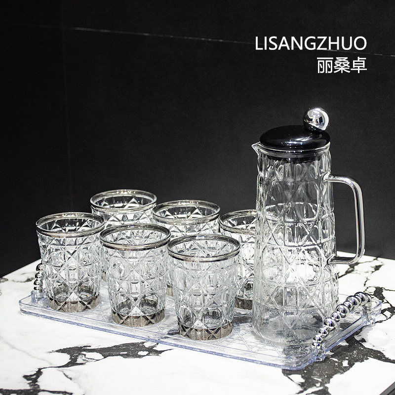 轻奢玻璃水具简约创意家用耐热喝水杯子客厅待客茶杯茶壶收纳套装