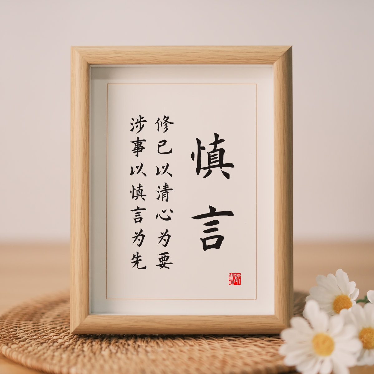 慎言摆件慎行办公室字画带框格言处事警句桌面座右铭摆台书法挂画