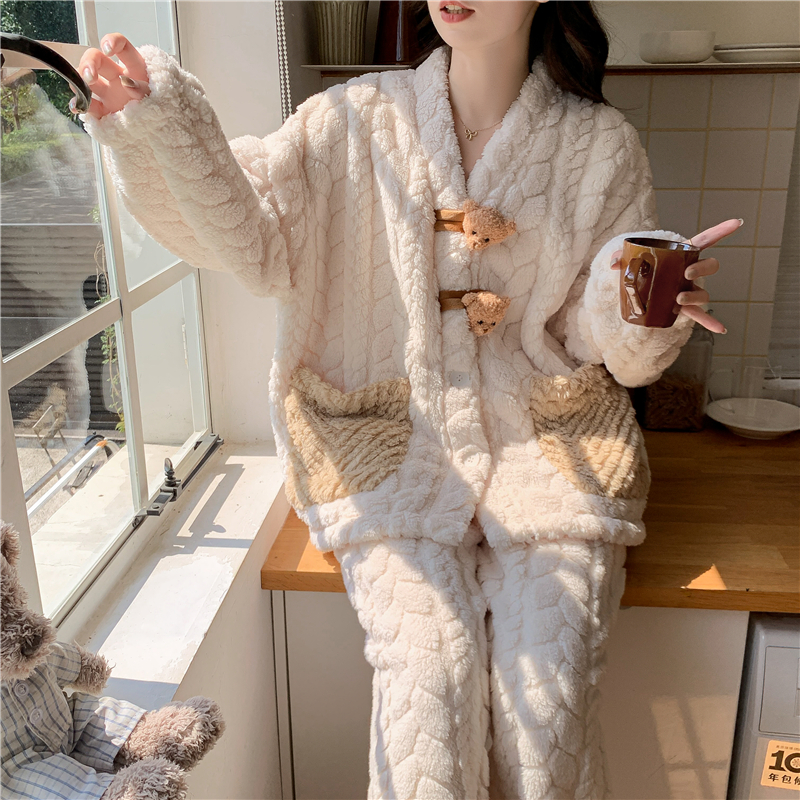 珊瑚绒睡衣女款秋冬季2025新款加厚保暖法兰绒小熊冬天家居服套装