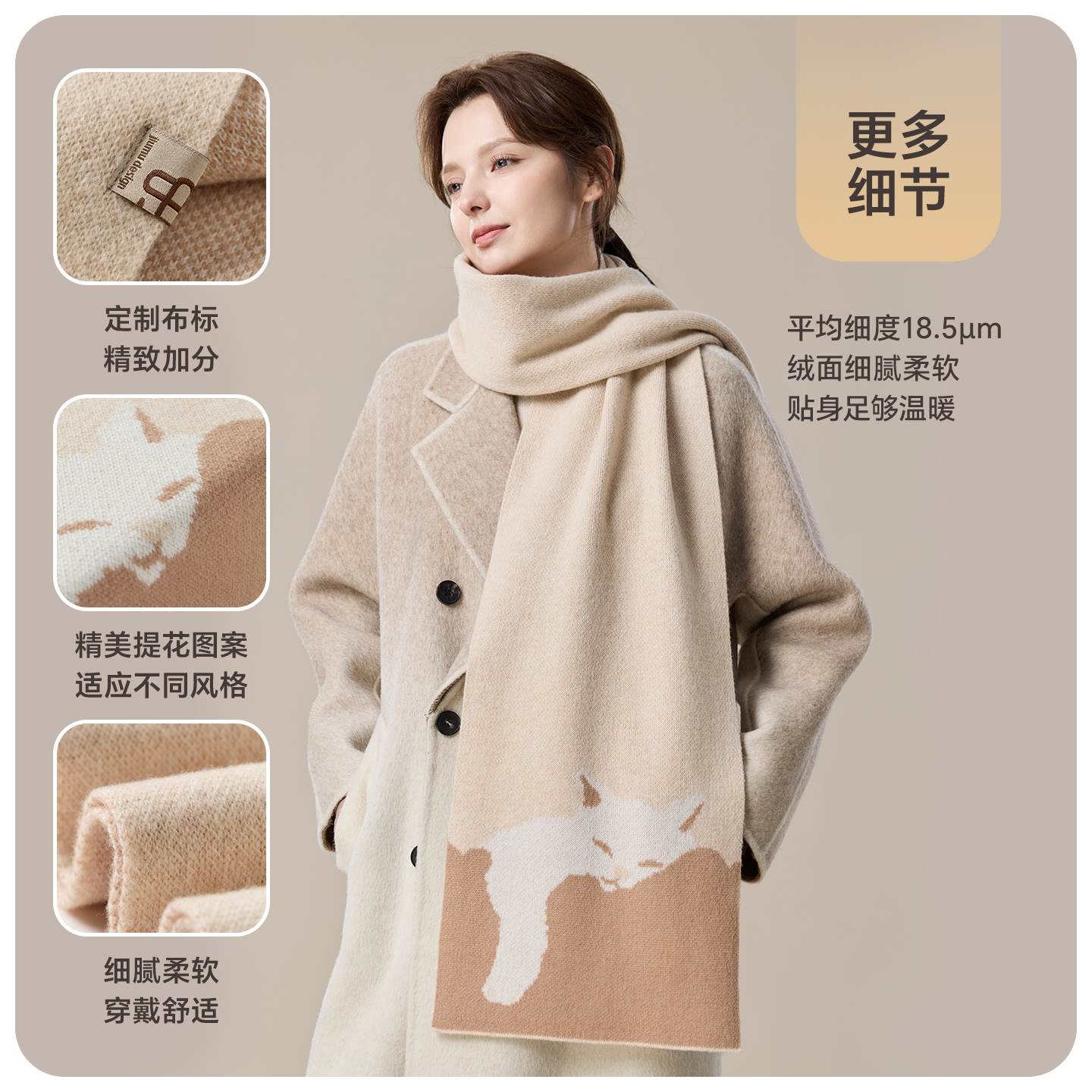 玖慕纯羊毛围巾女士秋冬新年礼物加厚保暖可爱猫咪披肩围脖礼盒装