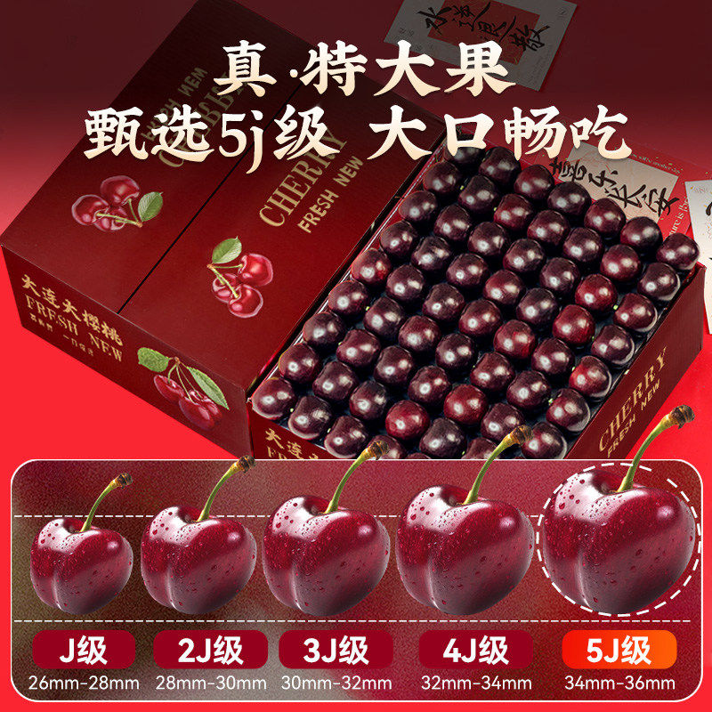 顺丰空运 国产大连美早樱桃5斤5j新鲜水果当季特大车厘子现货包邮