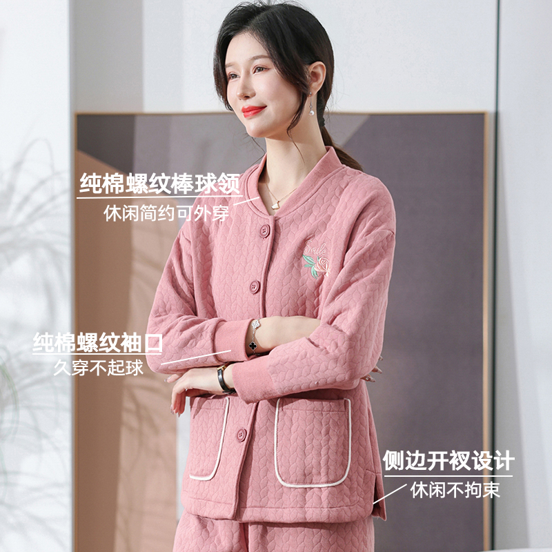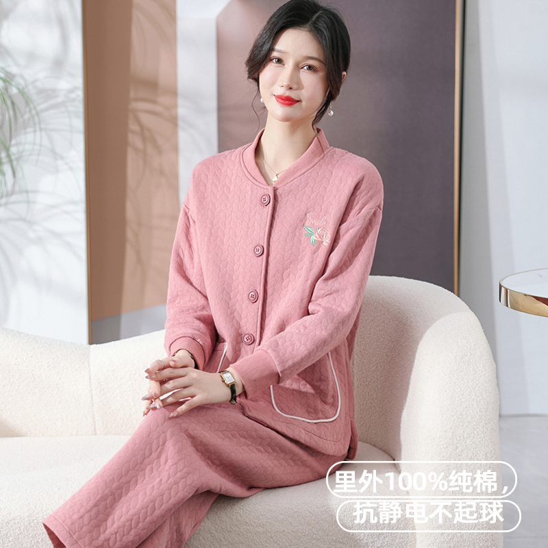 睡衣女秋冬季2024新款纯棉夹棉加大码春秋款加厚空气棉长袖家居服