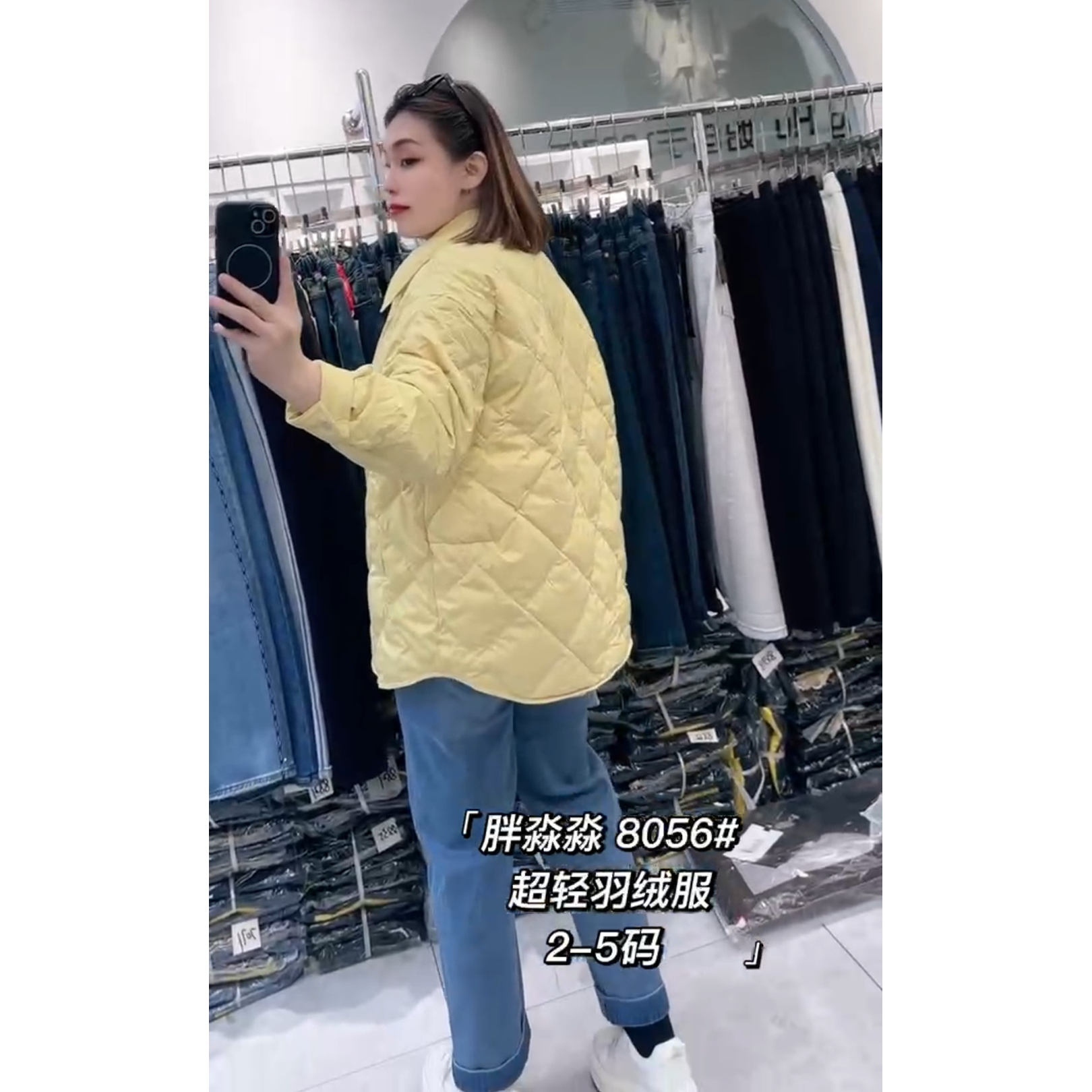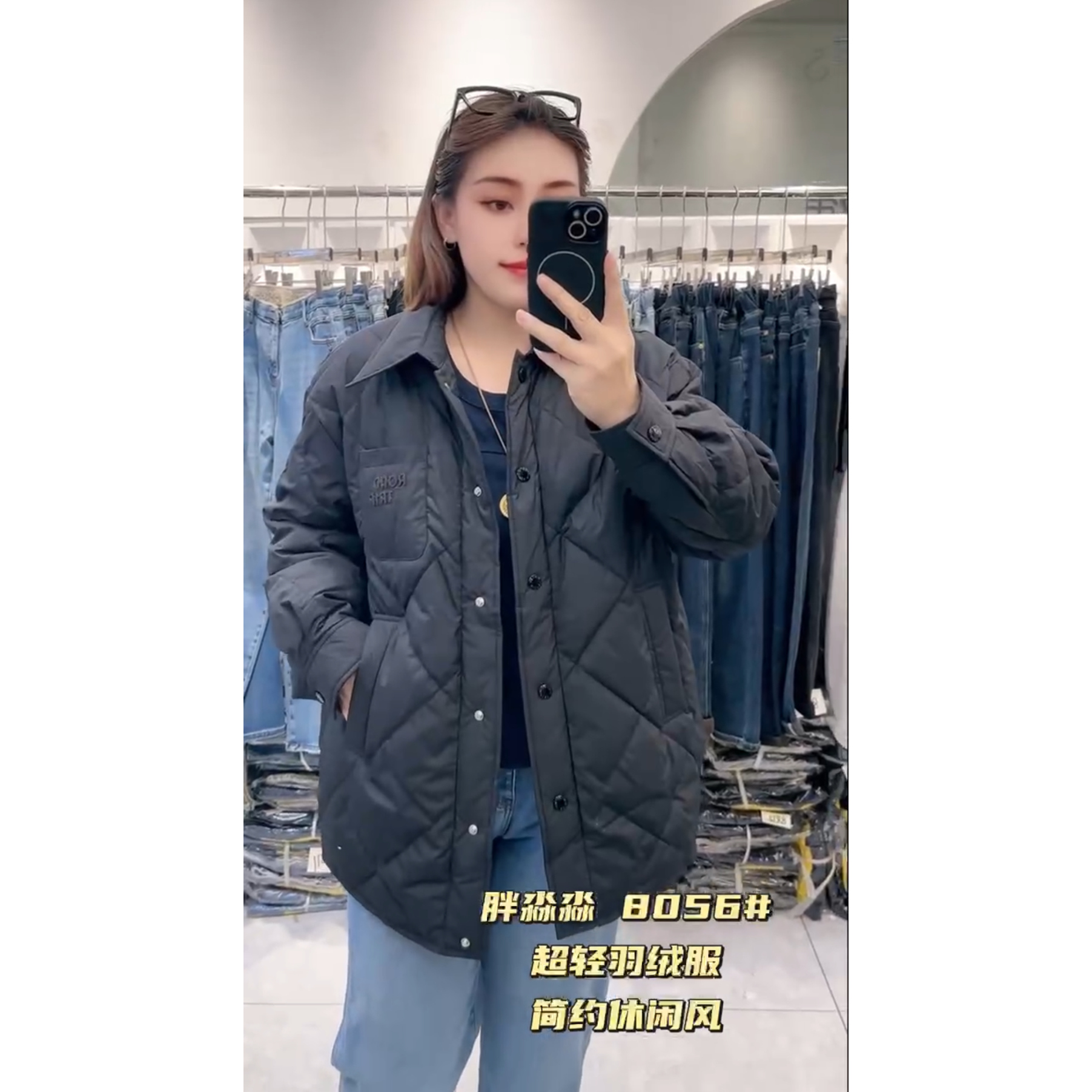 胖淼淼8056冬加大码轻薄羽绒服女 200斤胖妹mm衬衣衫领超轻白鸭绒