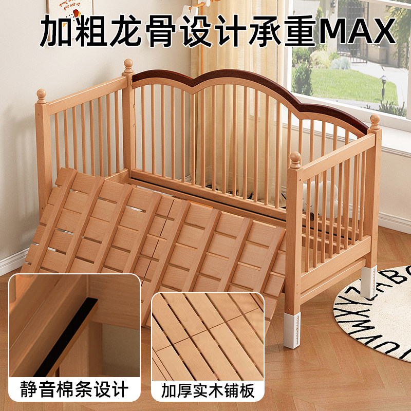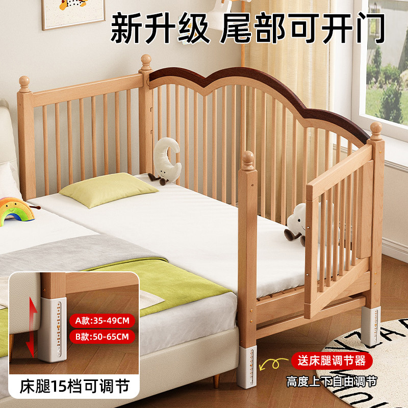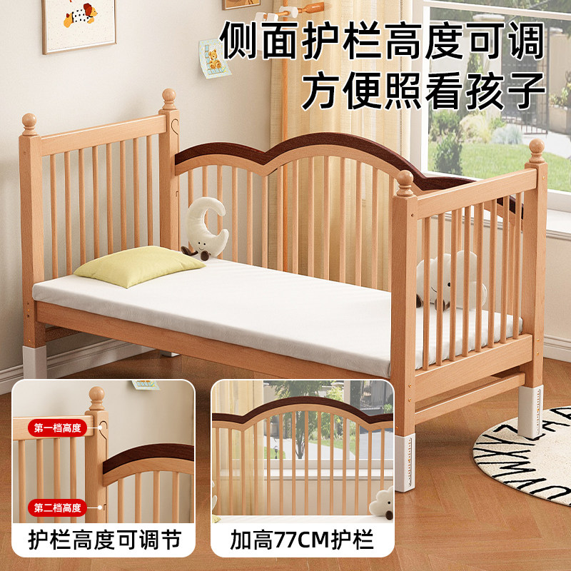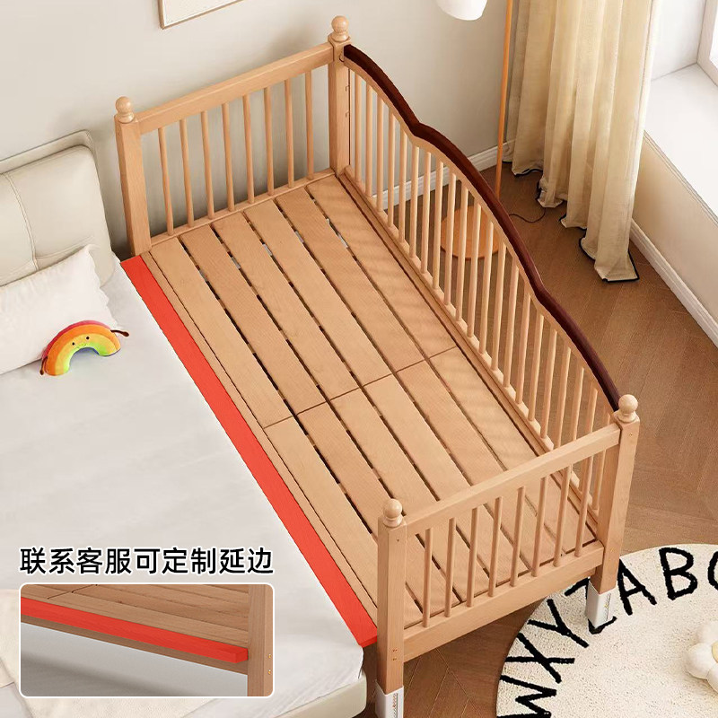 榉木儿童拼接床可升降高护栏