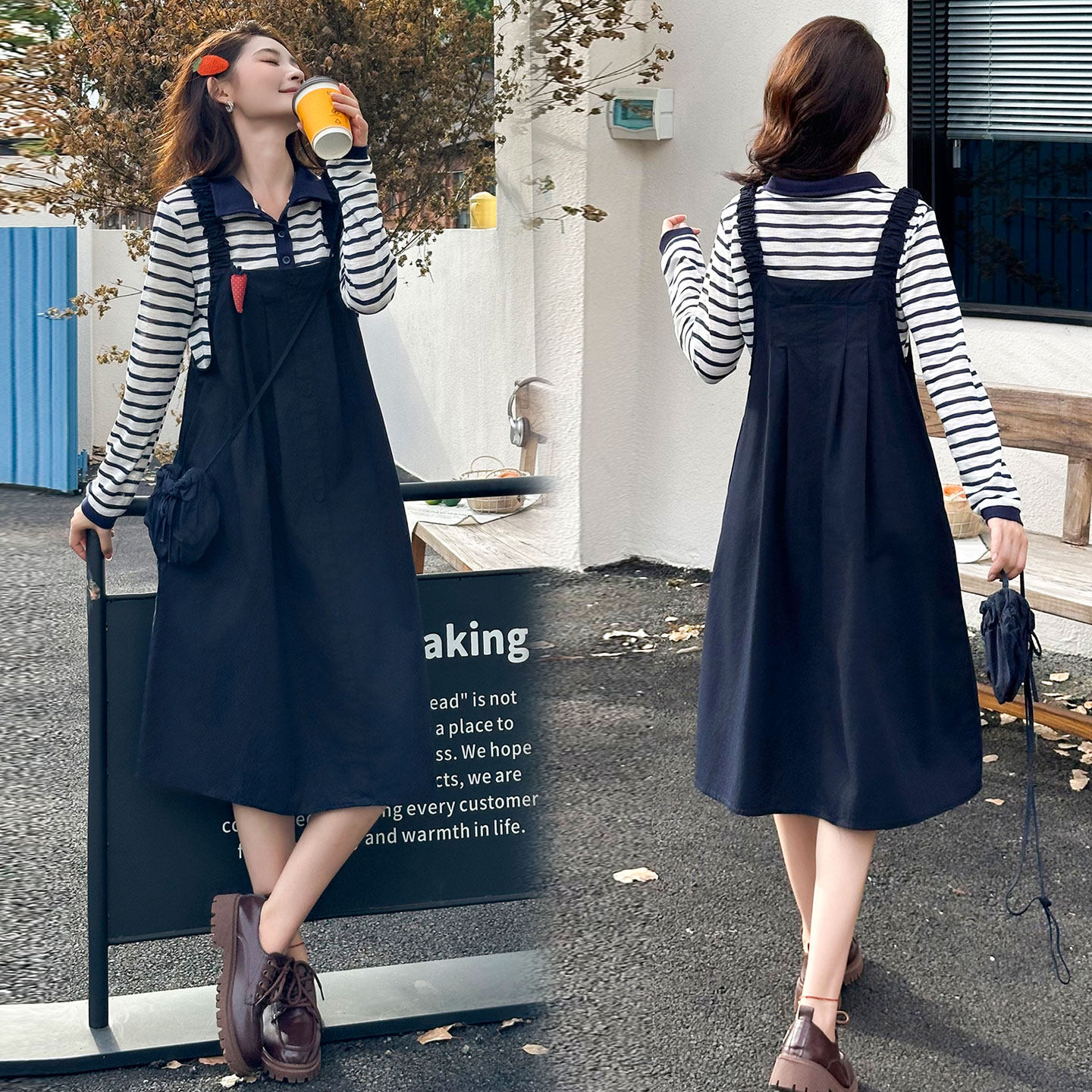 拉夏贝尔上衣+工装背带裙休闲款