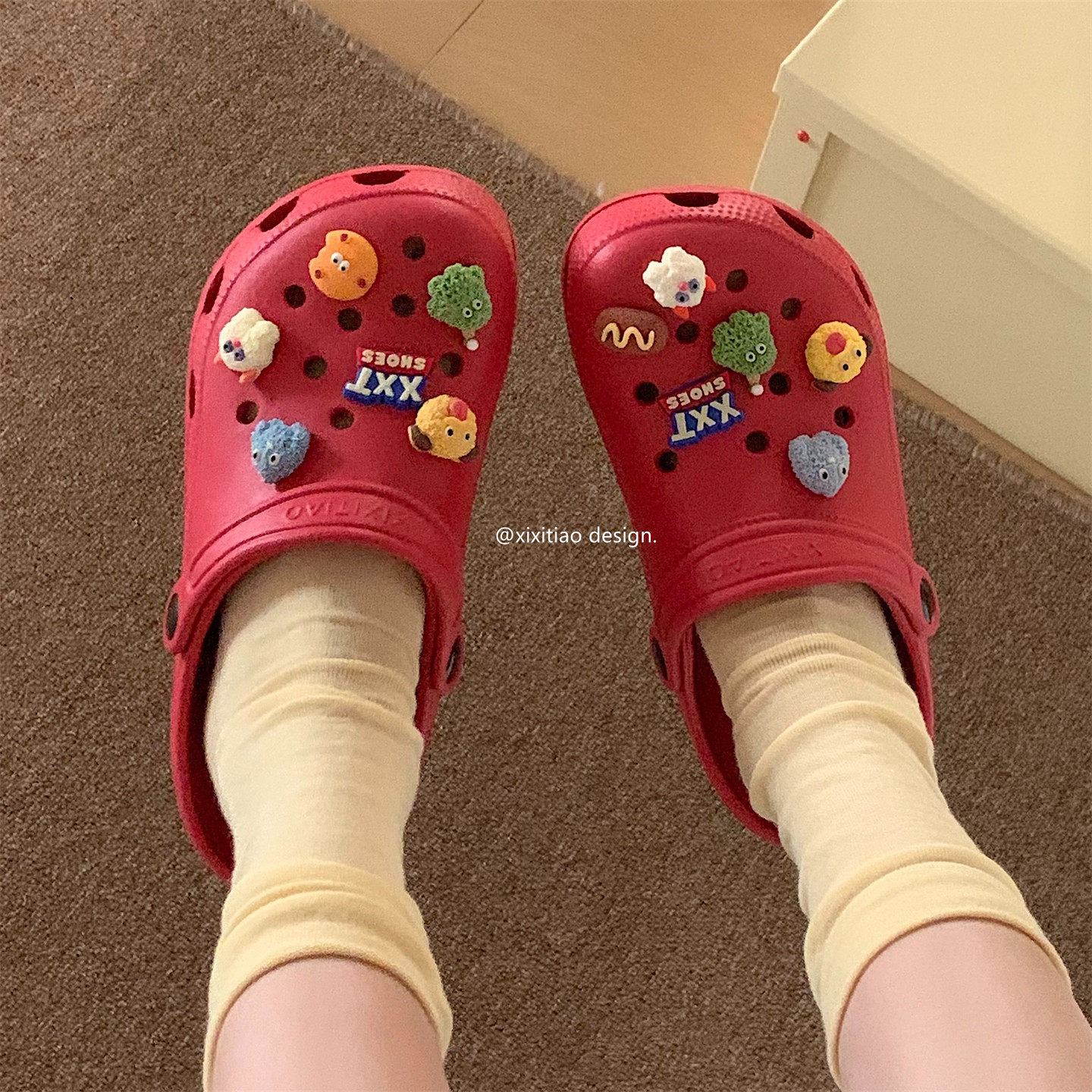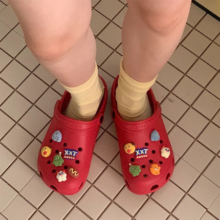 亲子夏男女洞洞鞋本命年儿童趣味小怪兽防滑新款百搭软底红色凉拖