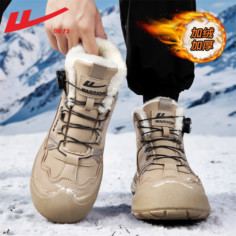 回力男鞋雪地靴男款冬季高帮棉鞋加绒马丁靴东北户外保暖工装鞋男
