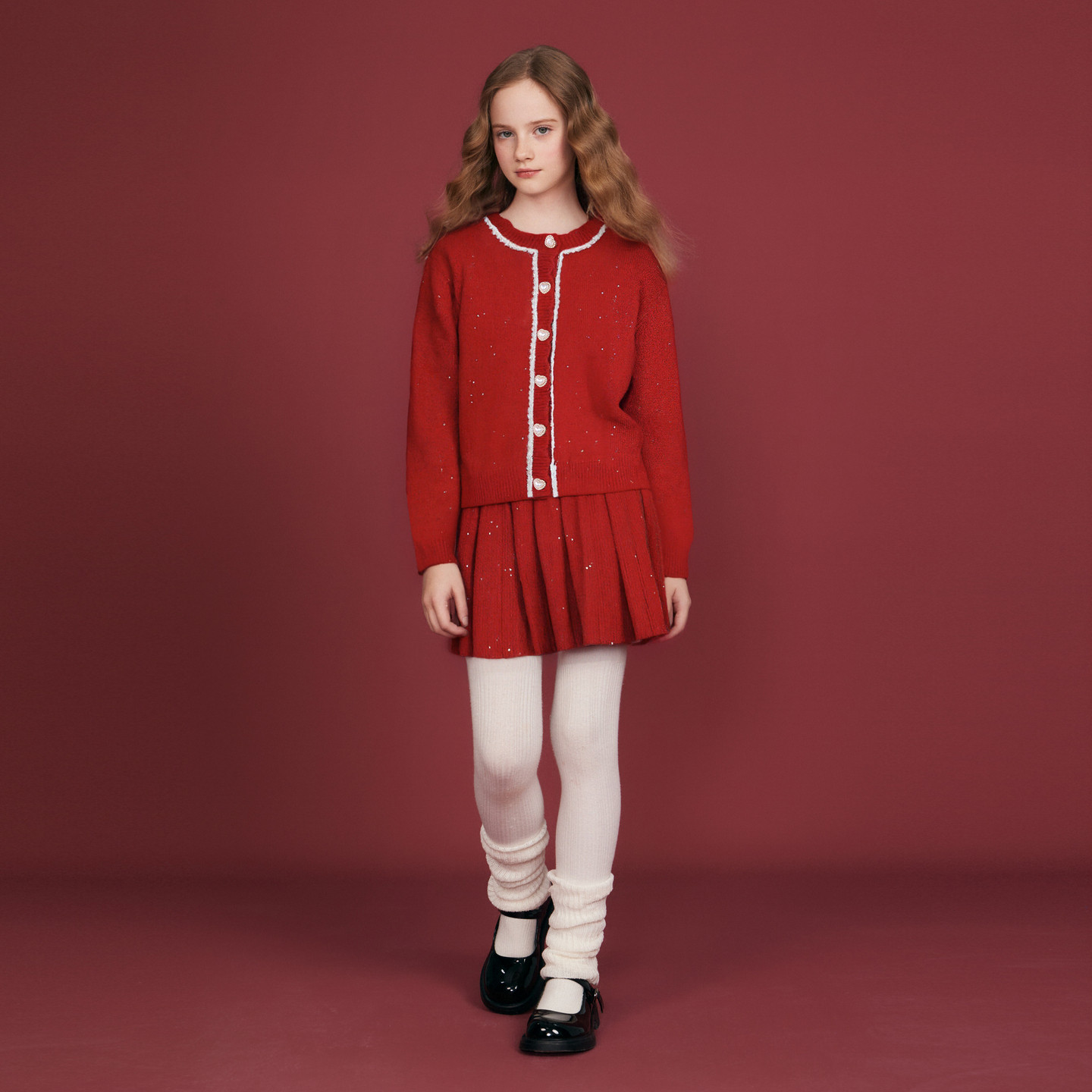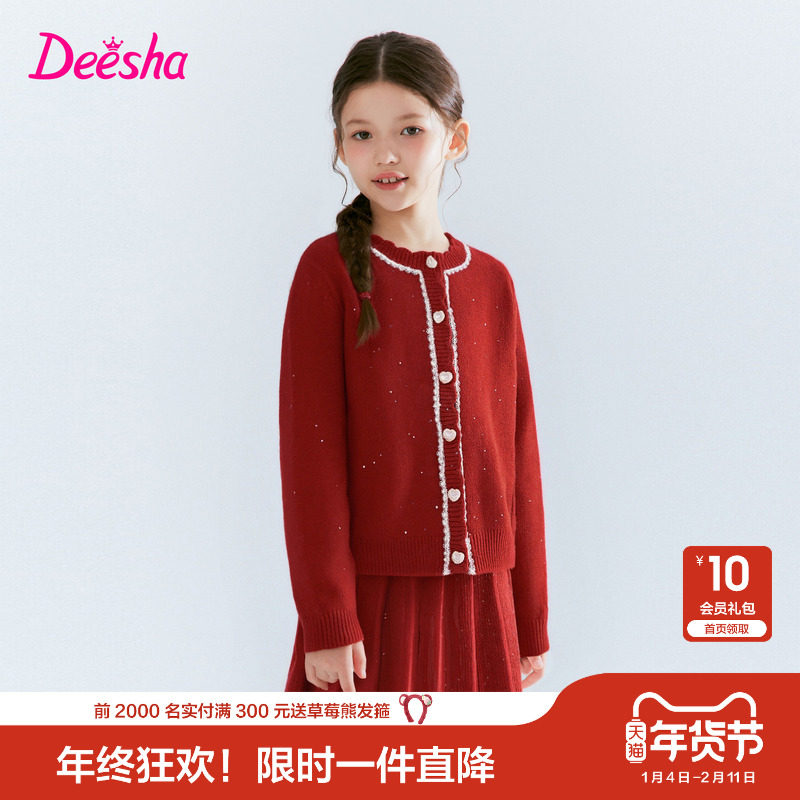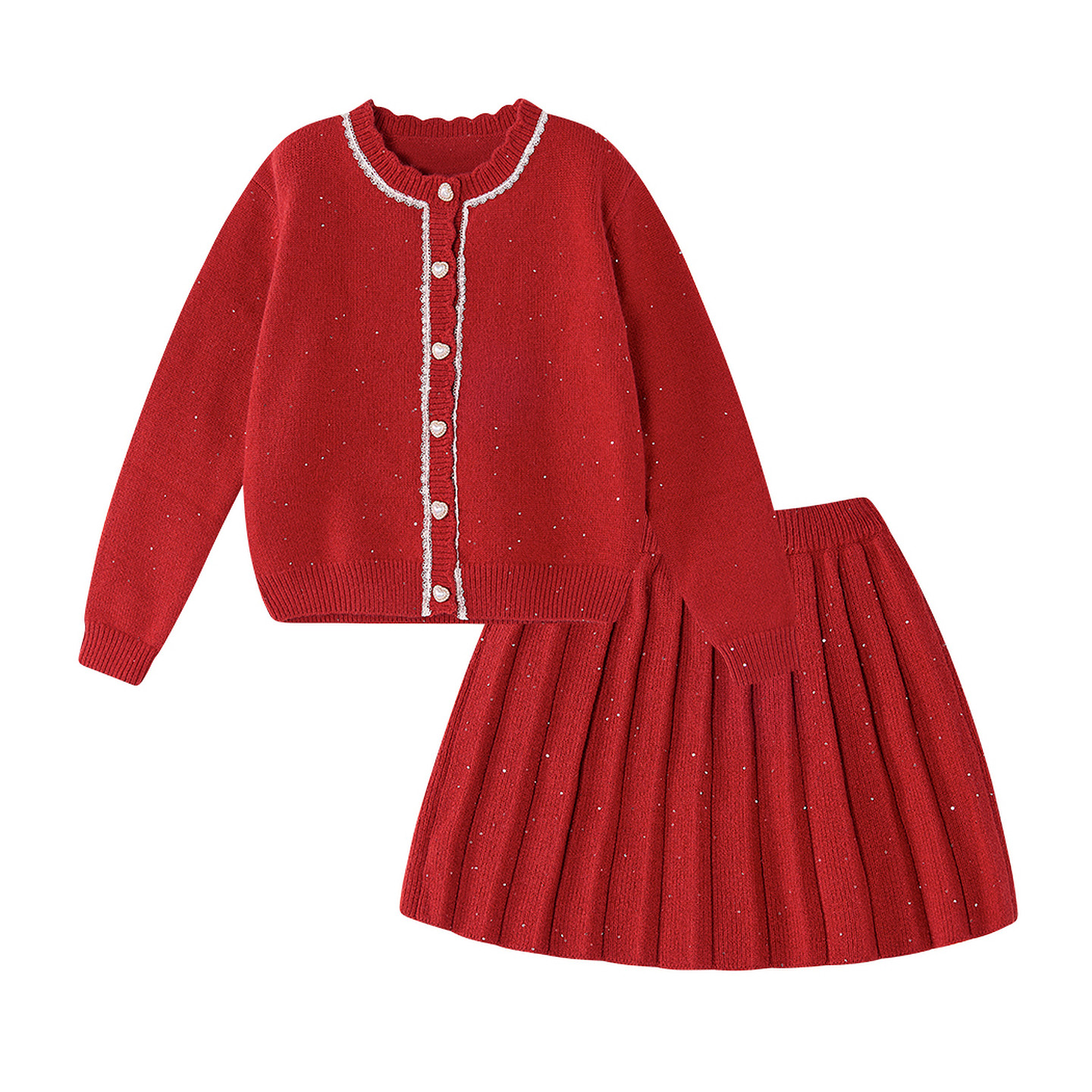 笛莎官方童装女童甜美套装冬季新款大童女孩儿童洋气蕾丝针织套裙