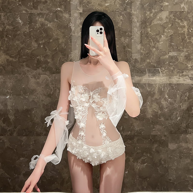 绝美立体花白色名媛辣妹仙女高级三角连体聚拢性感温泉度假泳衣女