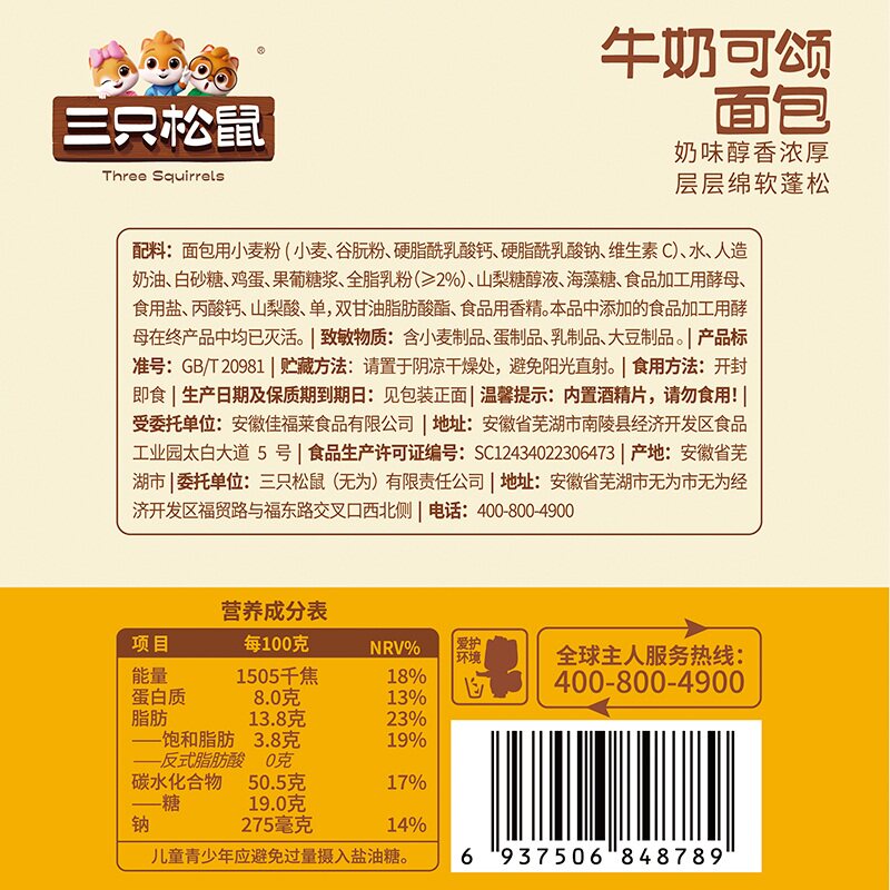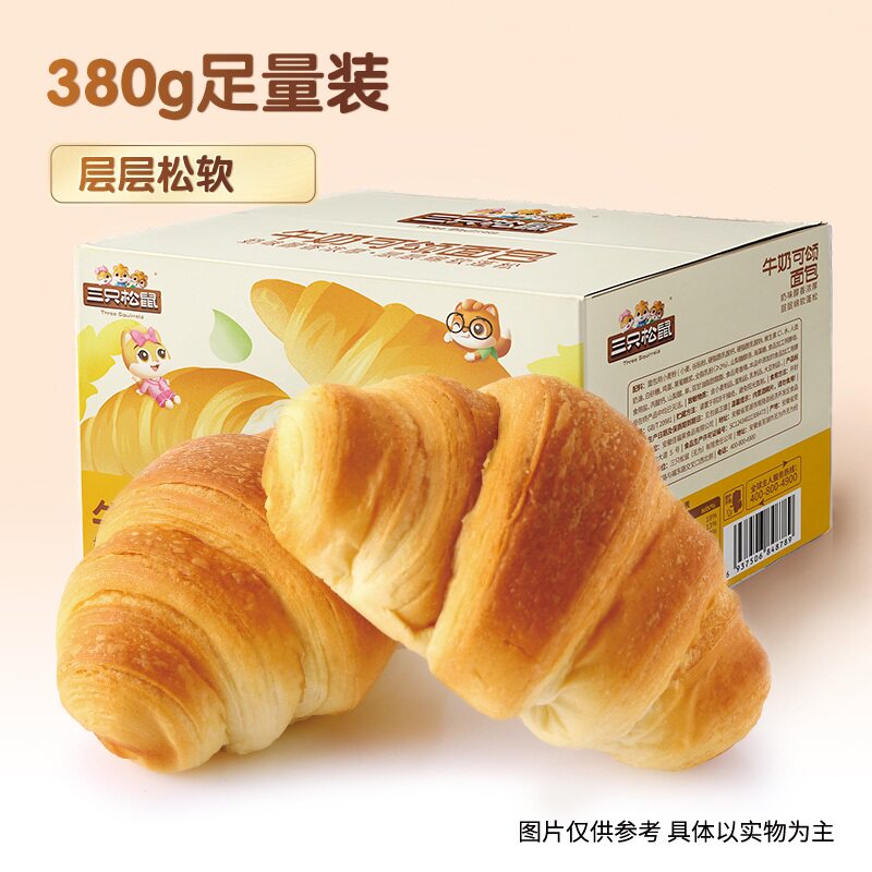 三只松鼠牛奶可颂面包牛角包380gX2箱休闲零食糕点代餐小吃美食