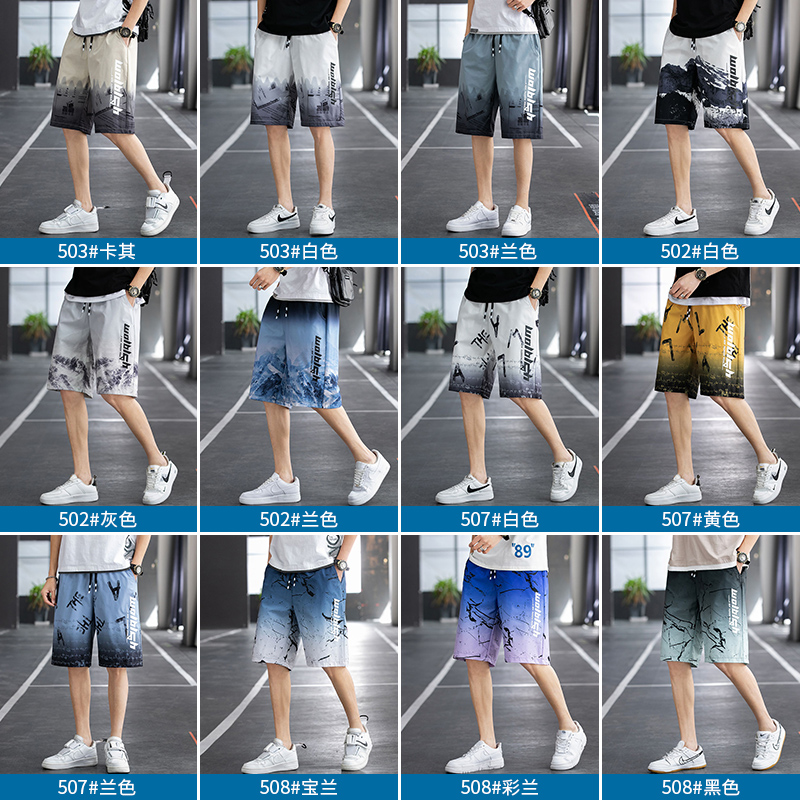 夏季短裤男士薄款大码凉感冰丝速干休闲裤胖子时尚印花运动五分裤