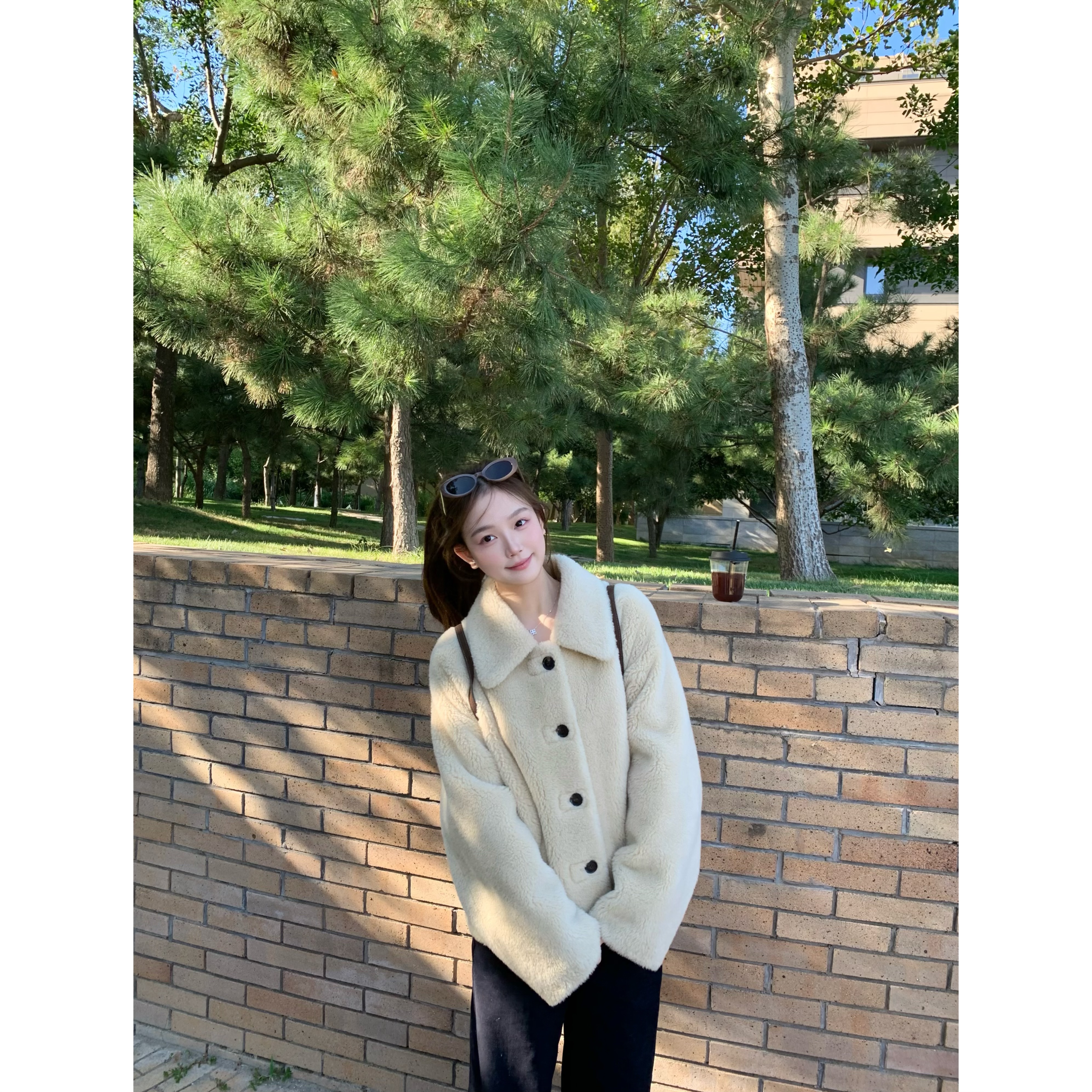 BBen 落日余晖 奶黄羊羔毛翻领外套女秋冬2025新款皮毛一体外搭