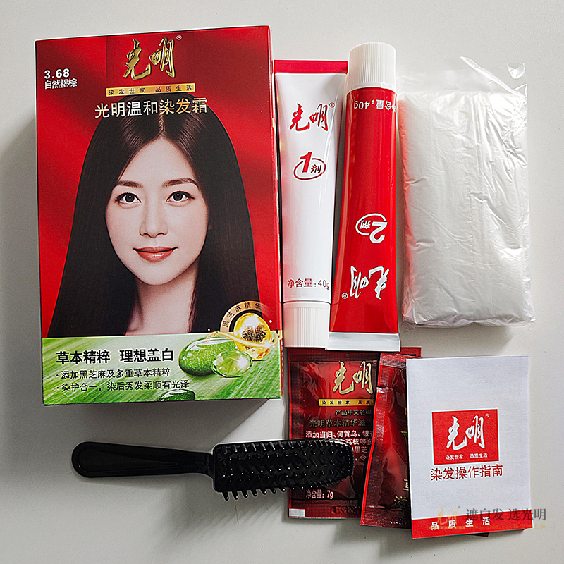 光明染发剂旗舰无氨温和染发膏霜褐棕黑色男女盖白发官方过敏包退