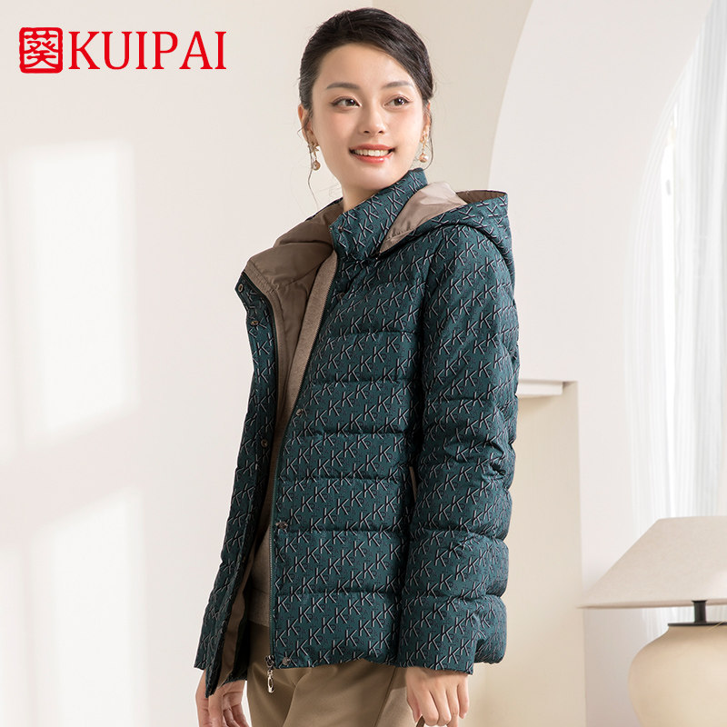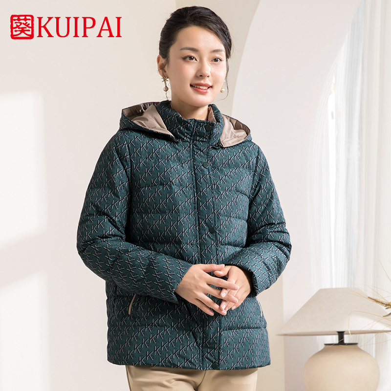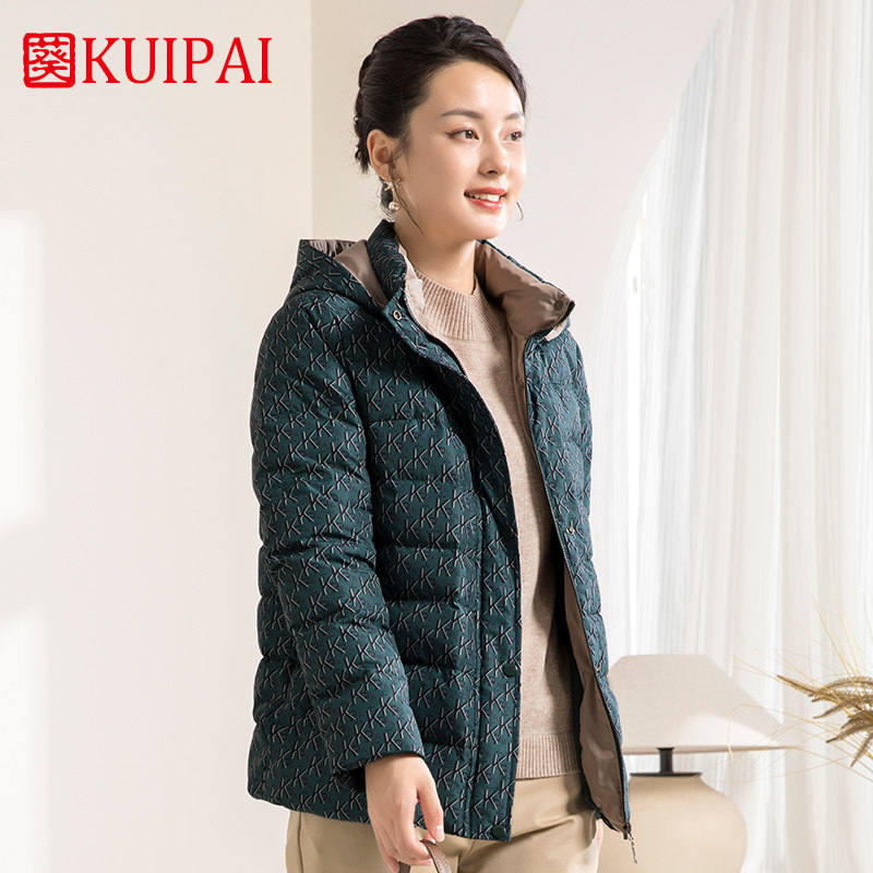 葵牌中老年短款90白鸭绒加厚保暖奶奶外套女装妈妈连帽羽绒服