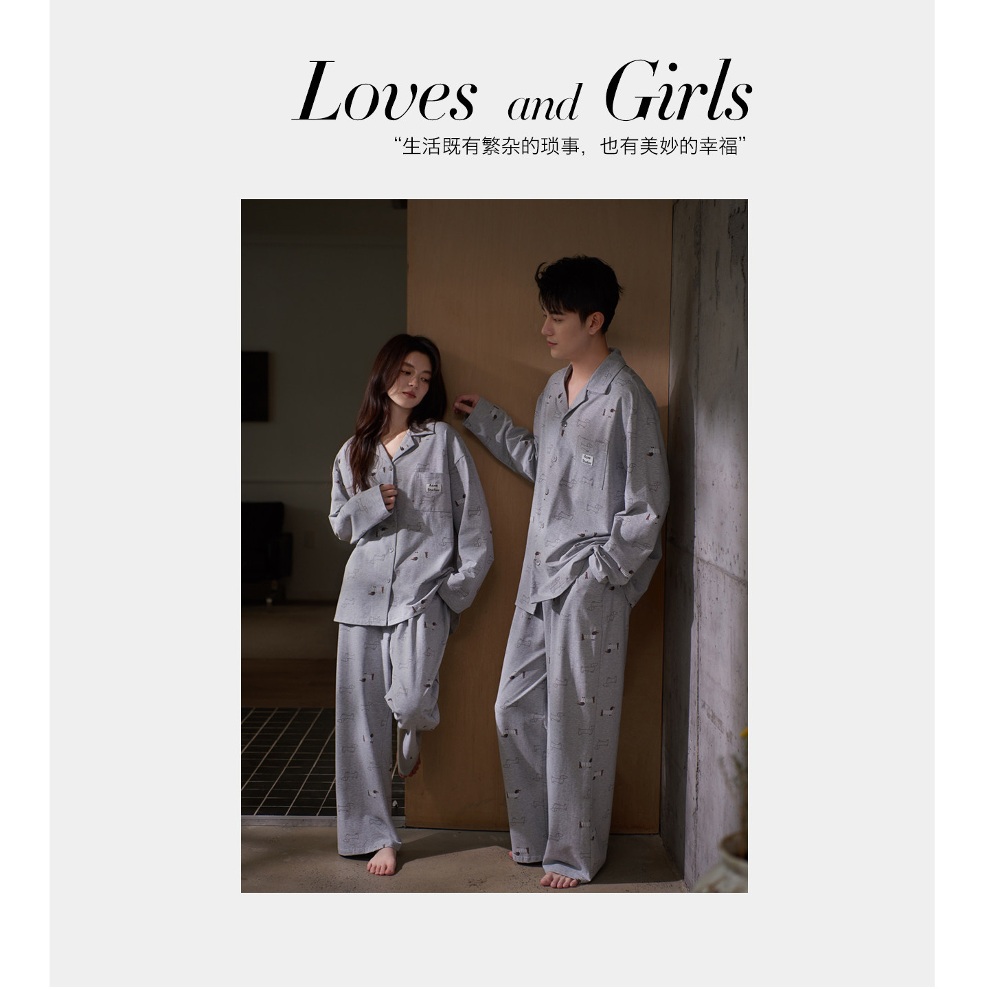 思莉太太花灰棉洋气时尚情侣睡衣