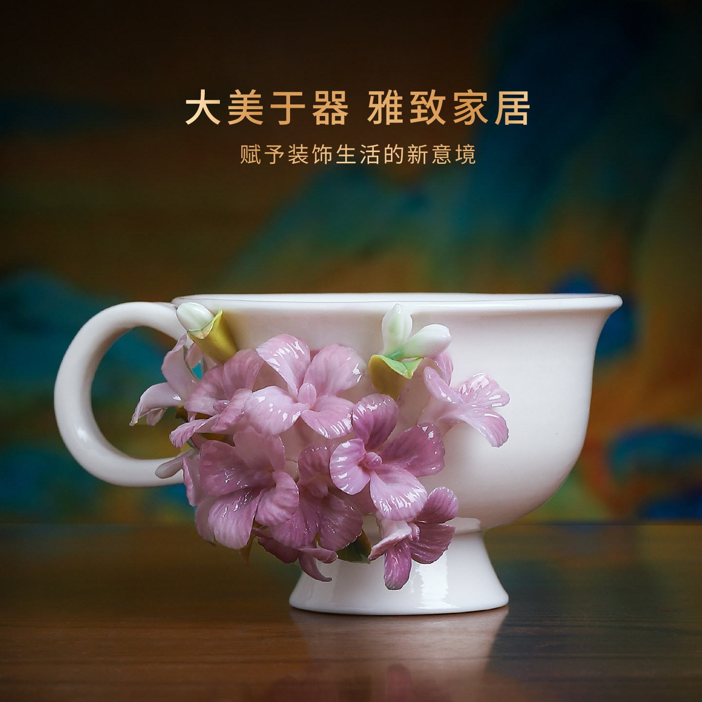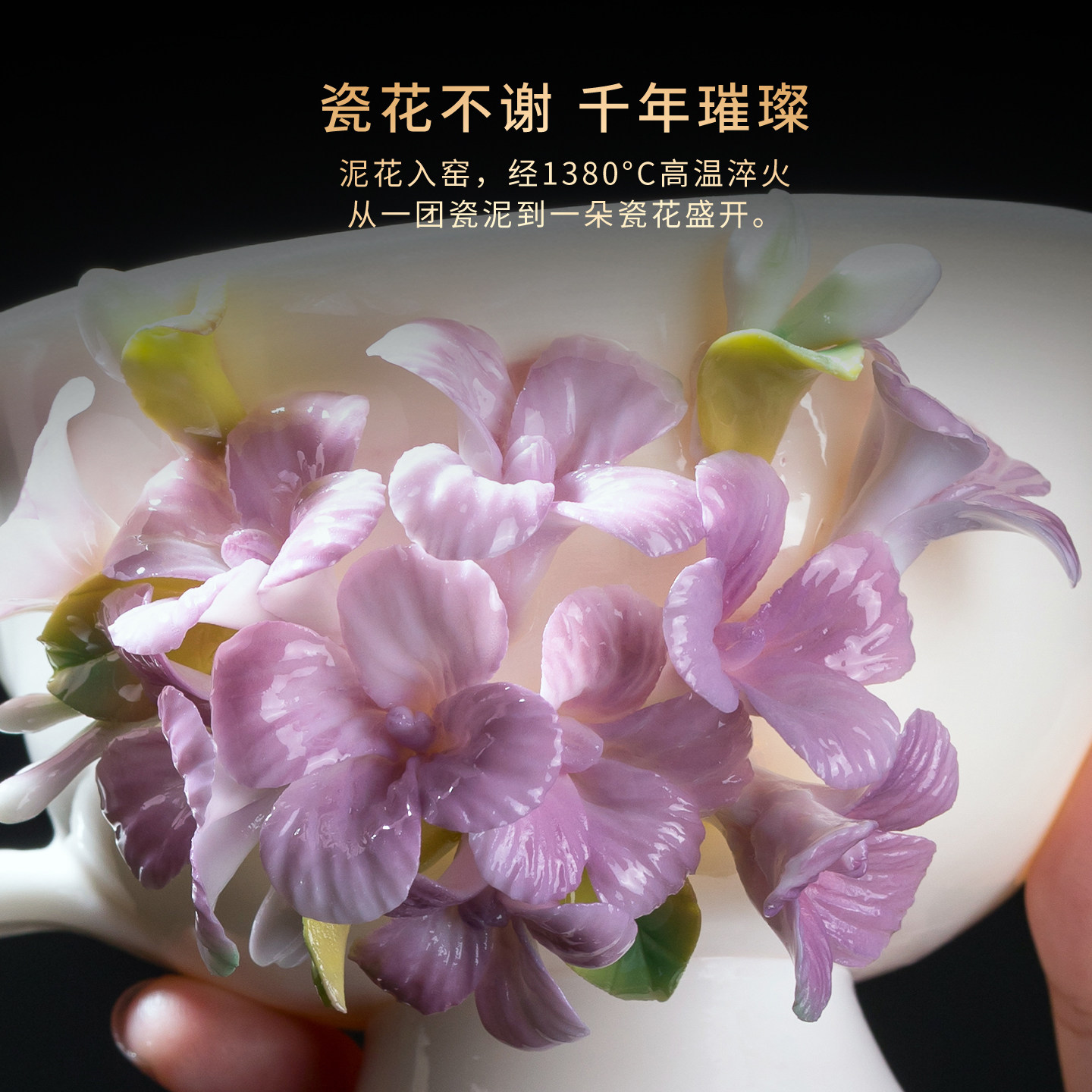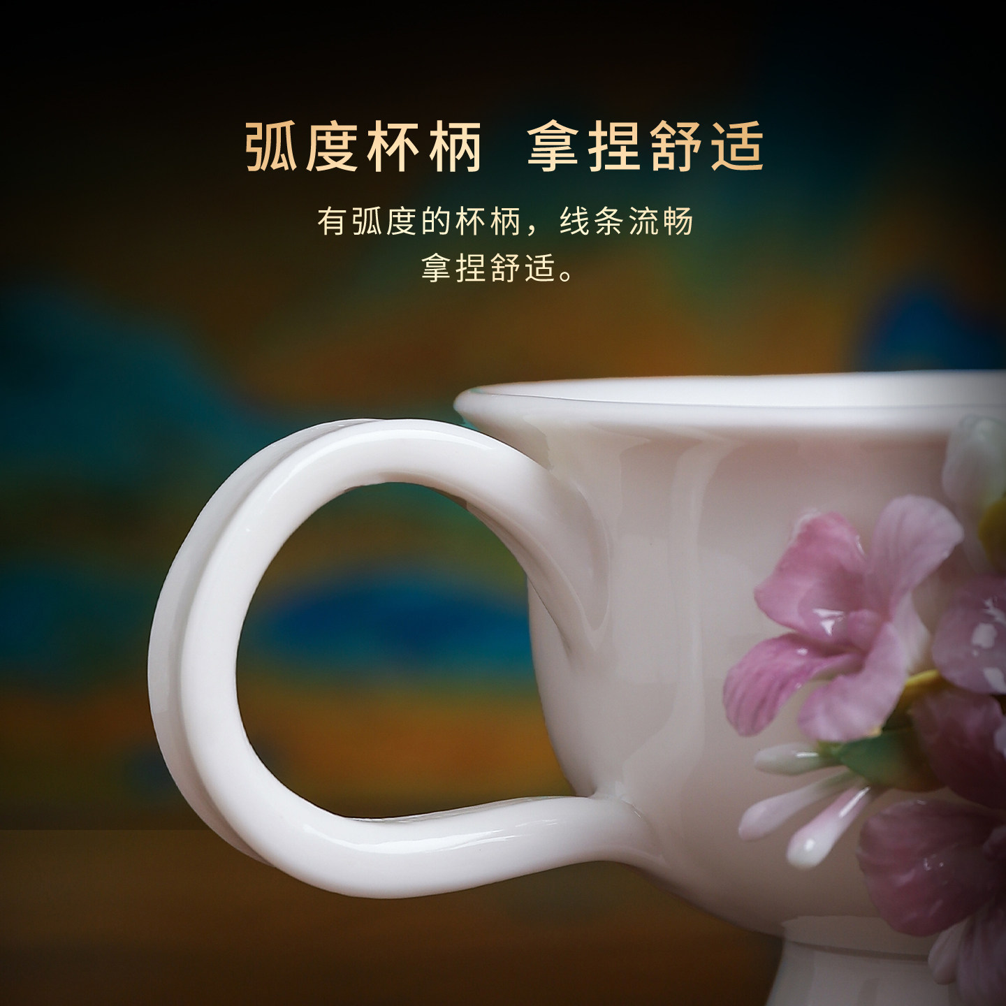非遗手捏花陶瓷水杯绣球花咖啡杯茶杯杯子马克杯女神女生生日礼物