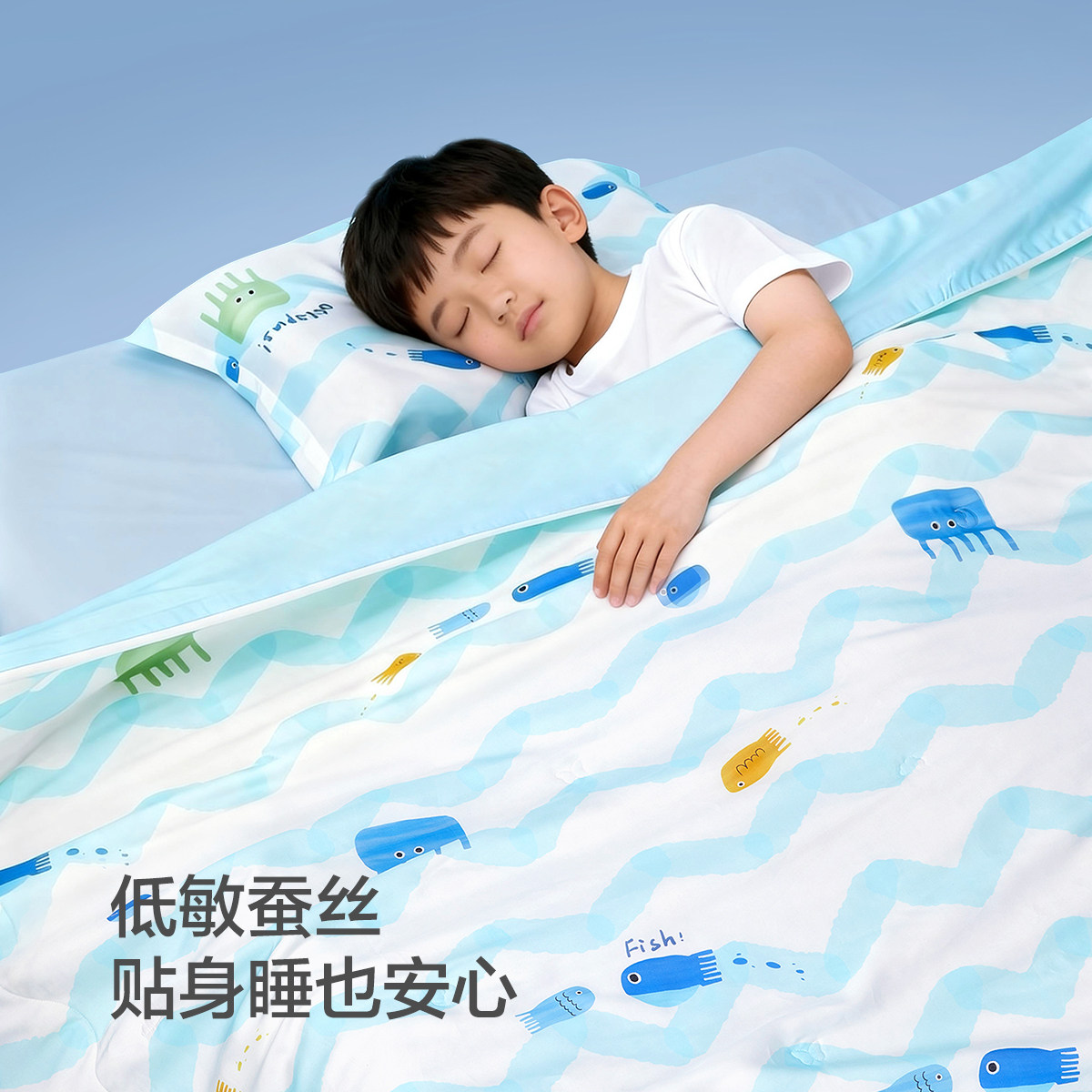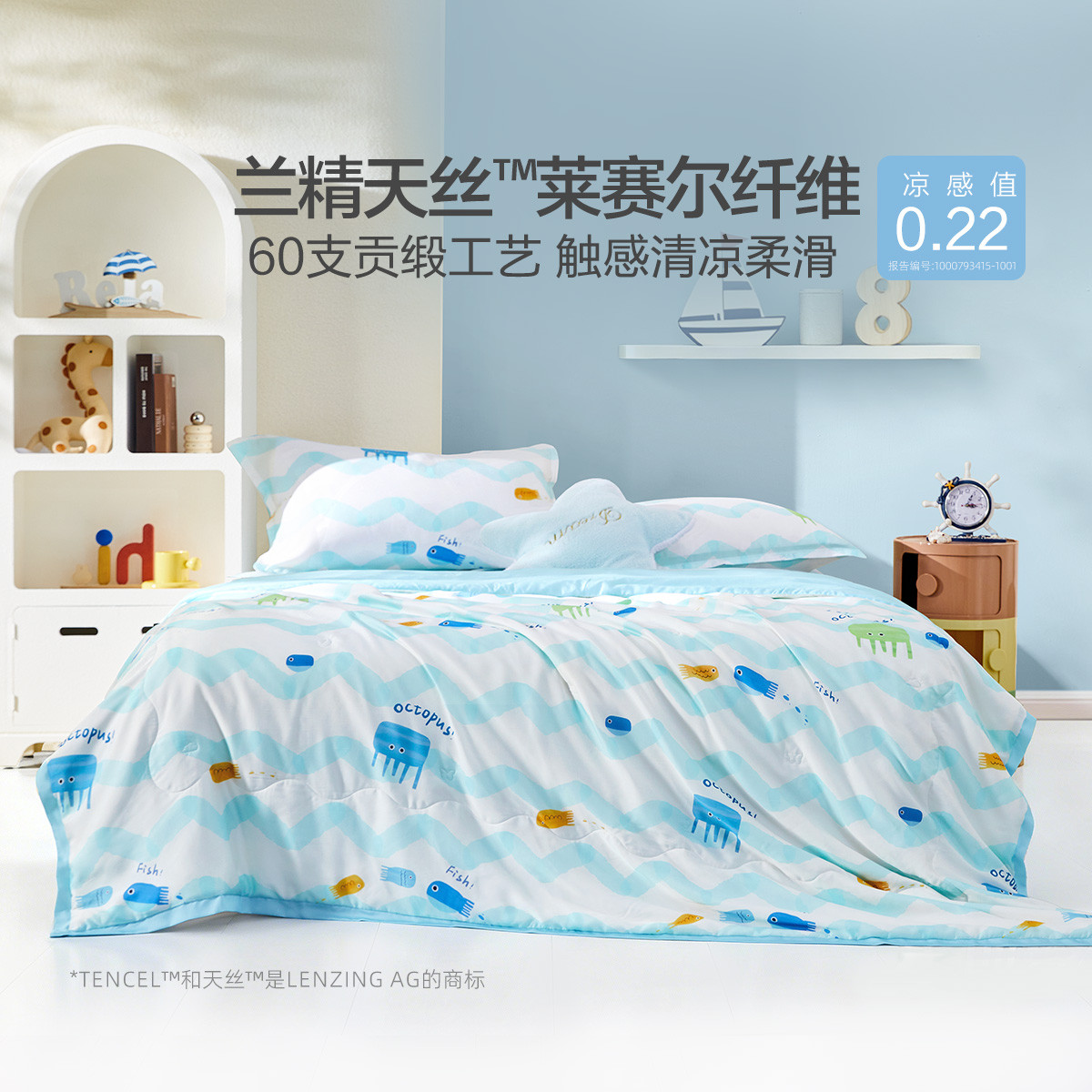 水星家纺儿童夏凉被60支天丝™低敏蚕丝薄被子空调被芯床品26新品