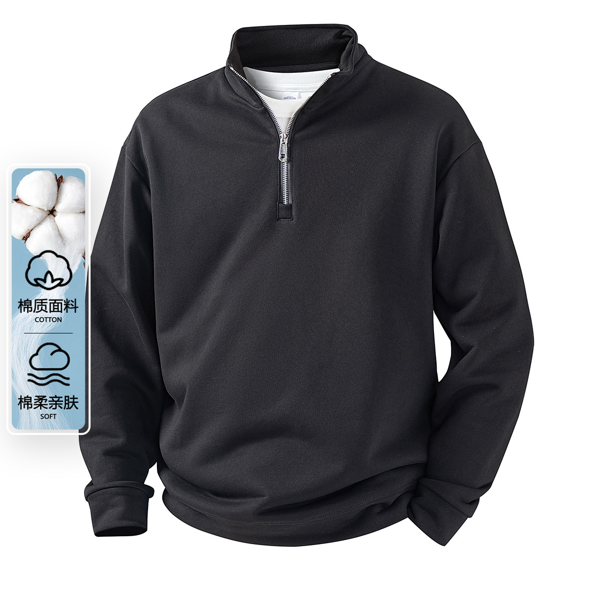 罗蒙春秋新款立领半拉链开襟卫衣休闲运动爸爸装长袖棉感外套男士