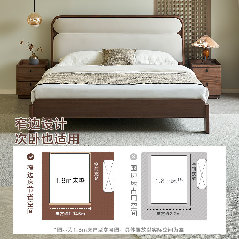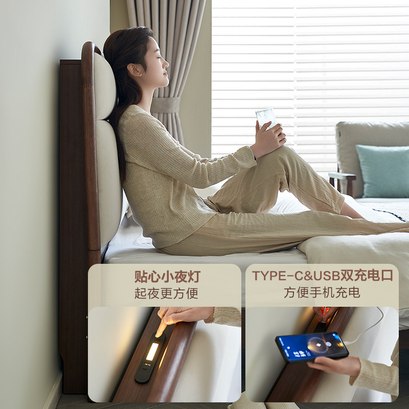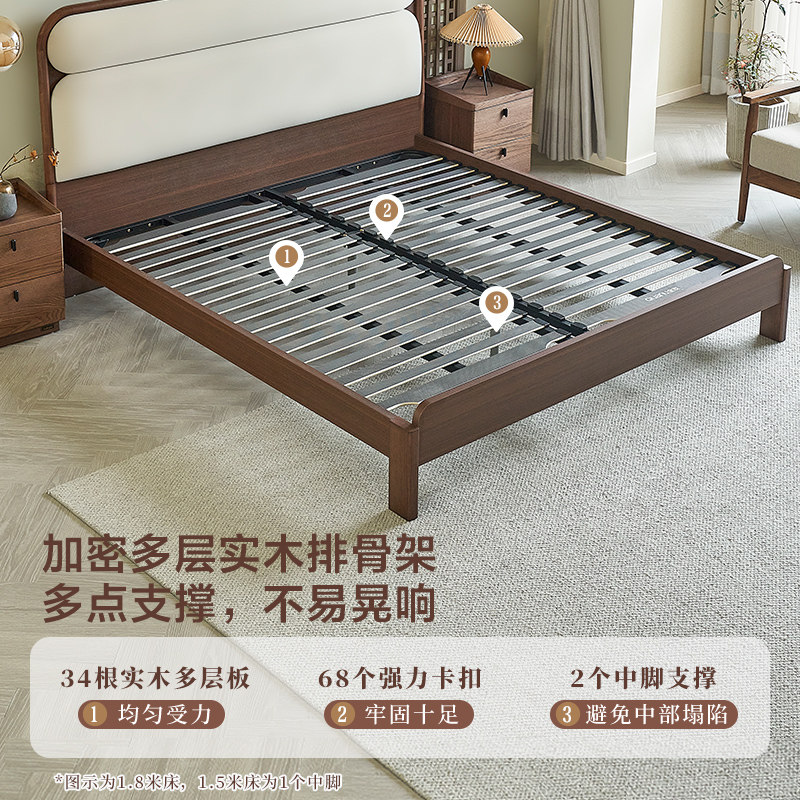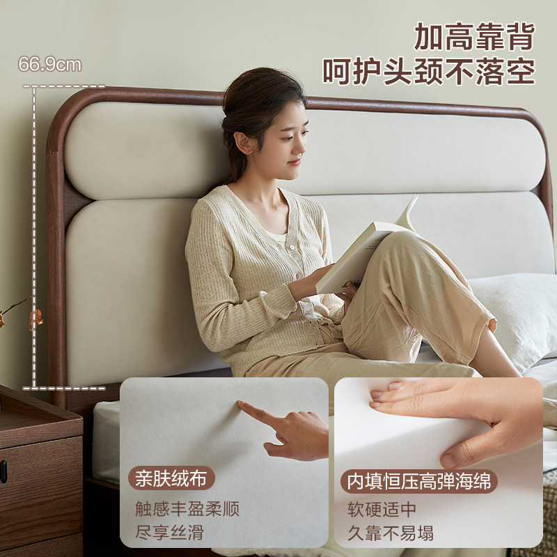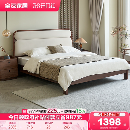 全友家居新中式软包大床2026新款卧室实木脚床1米8胡桃木色双人床