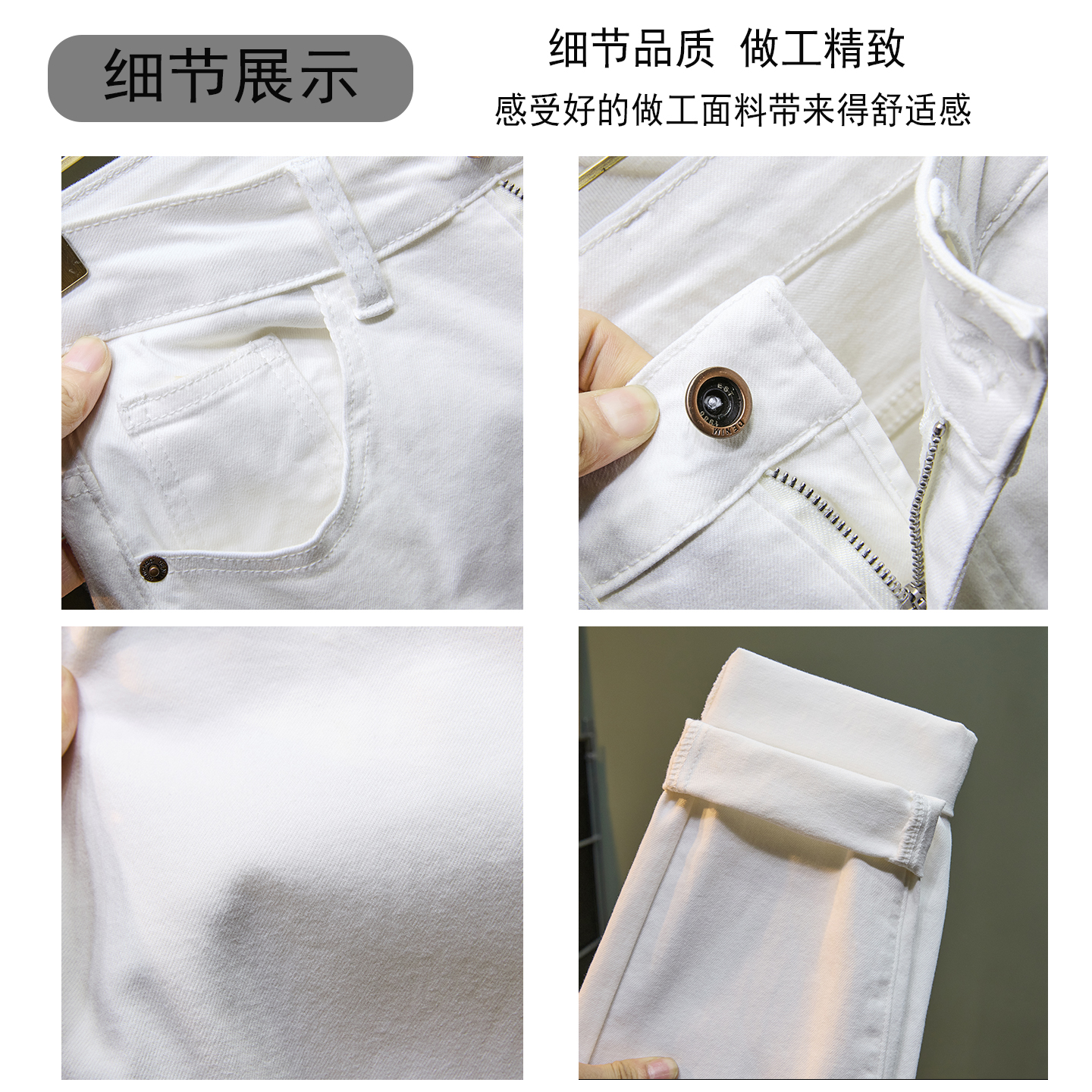 白色牛仔裤男士2025冬季百搭潮流休闲时尚弹力韩版修身小脚九分裤