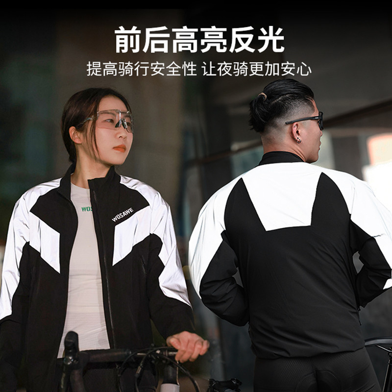 沃萨维春秋公路自行车骑行风衣跑步运动反光服外套山地车速干上衣