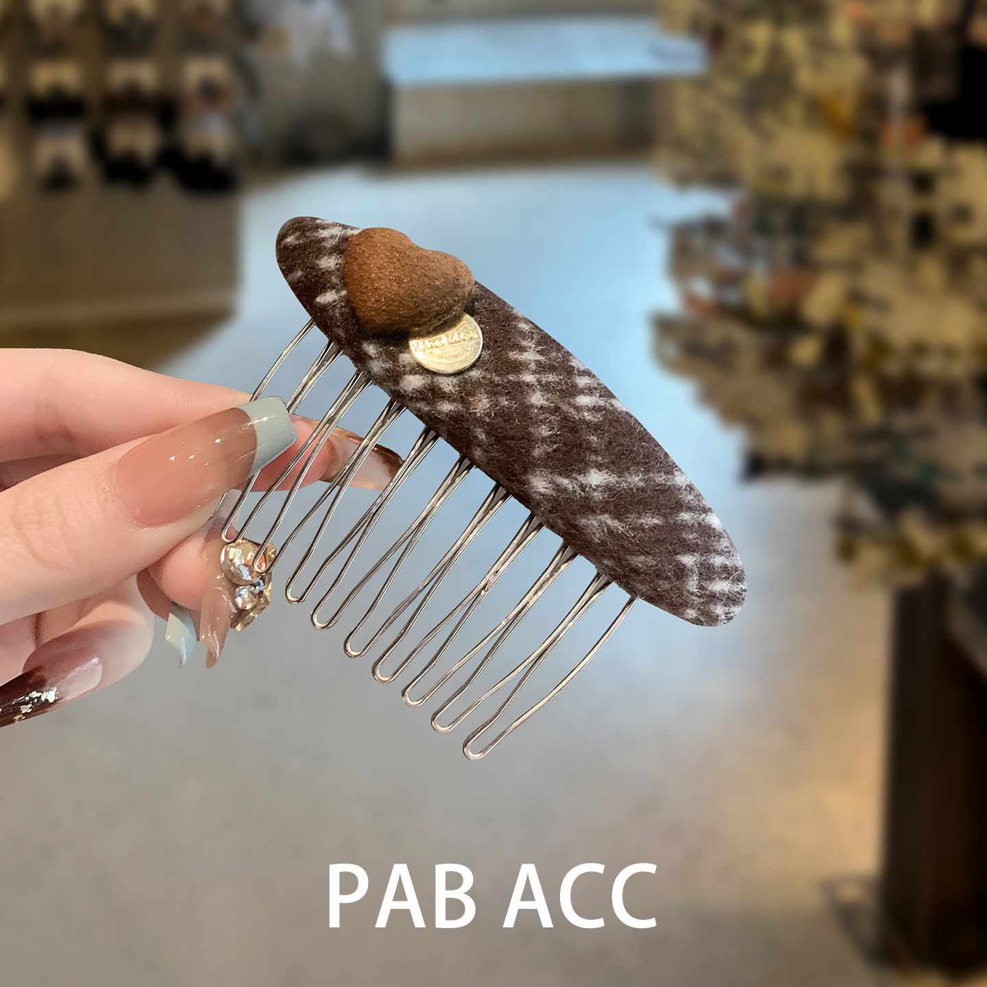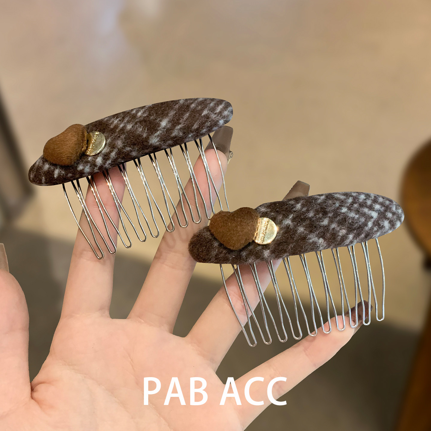 韩国创意设计感格纹立体爱心金标发箍懒人刘海防滑齿倒插夹子发饰