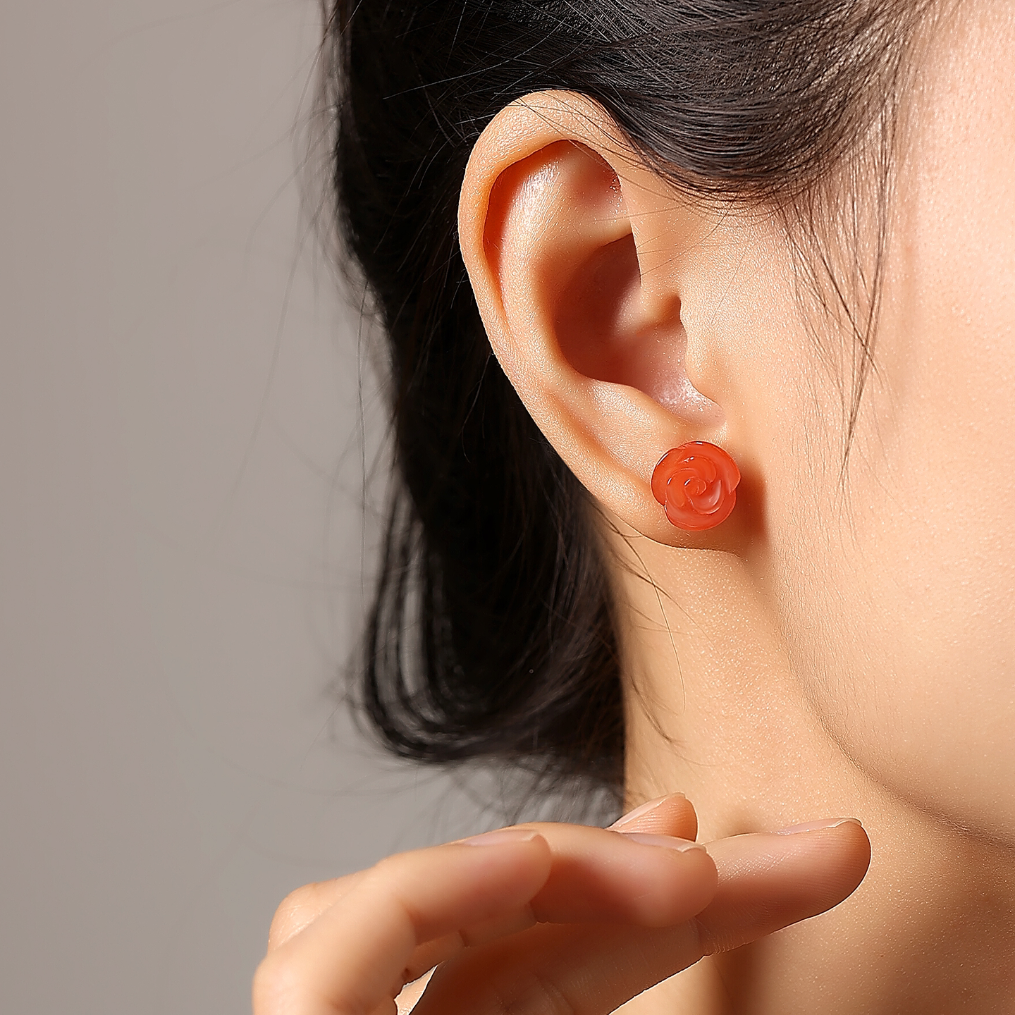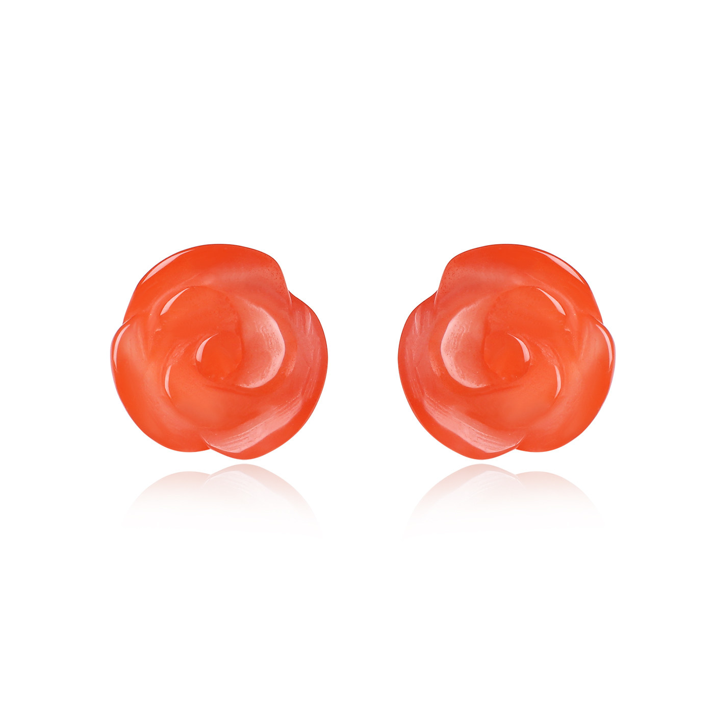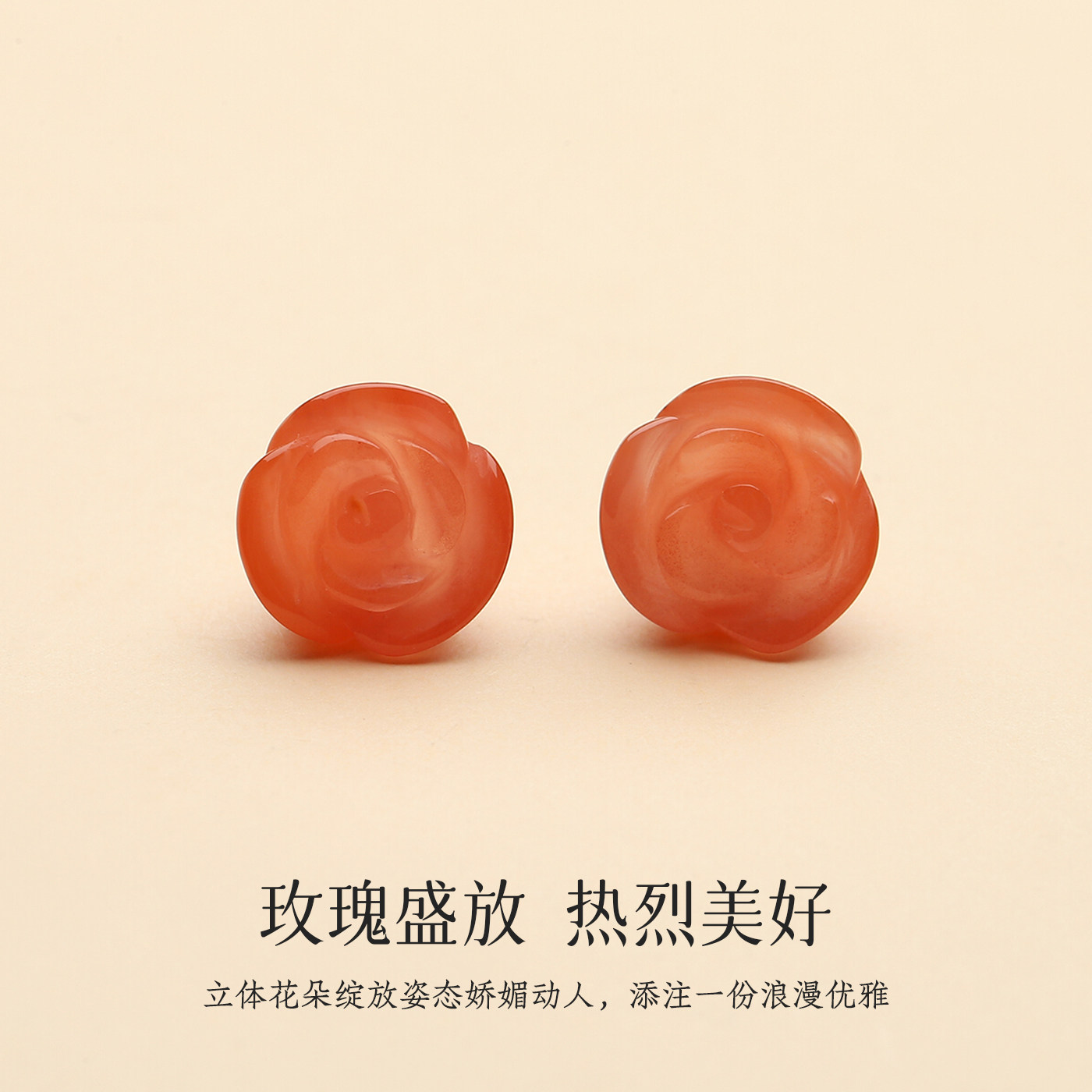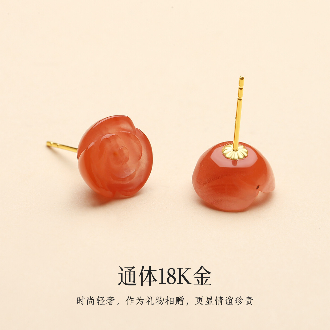 原矿川料南红18K金玫瑰花耳钉