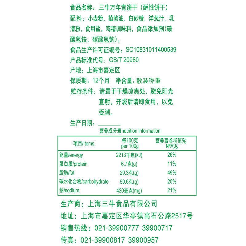 上海三牛万年青饼干咸味小零食椒盐苏打饼干鲜葱酥散装整箱多口味