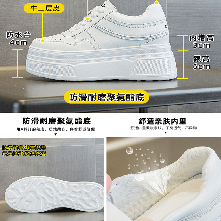 真皮厚底小白鞋女2025新款春季透气松糕板鞋小个子内增高女鞋9cm
