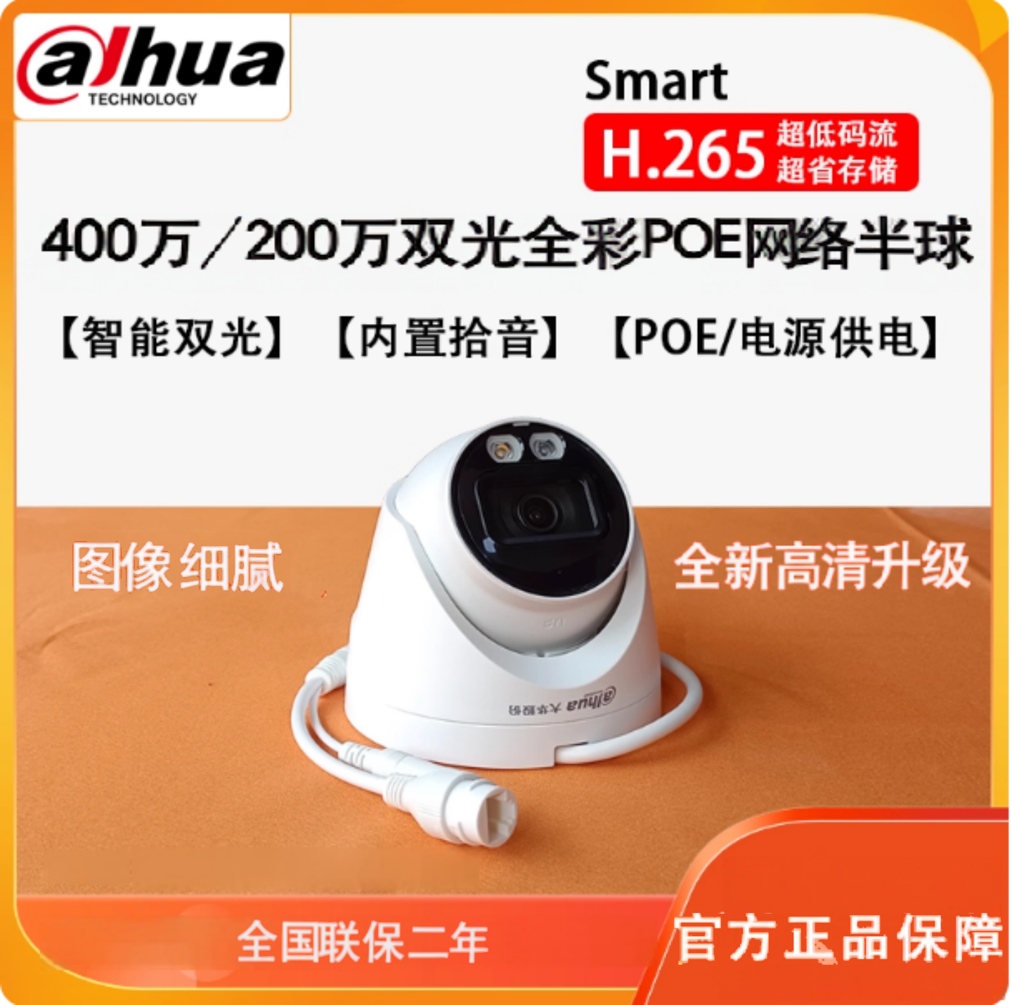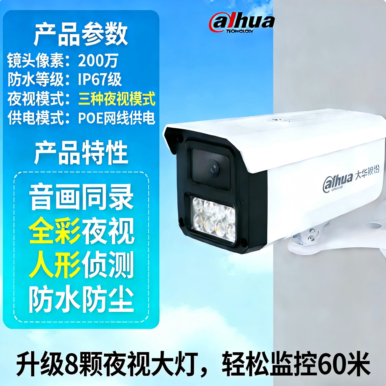 大华监控摄像头poe供电全彩高清