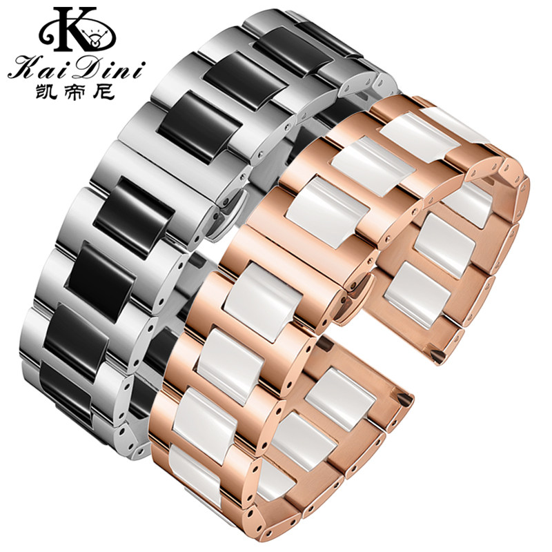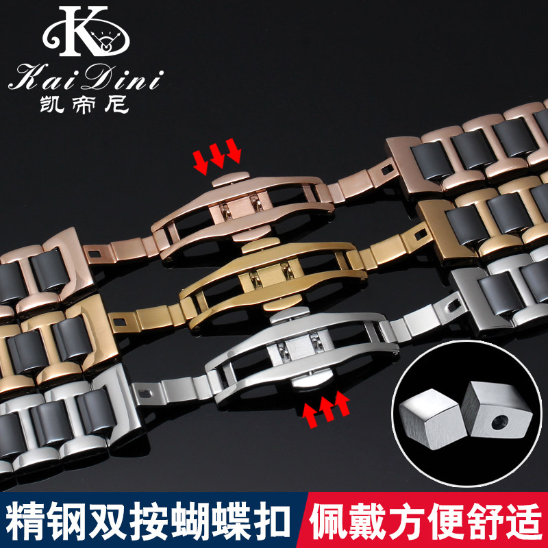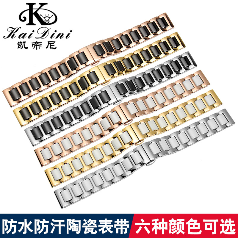 精钢间陶瓷手表带 适配guess铁达时卡西欧CK天梭陶瓷表带16 18mm