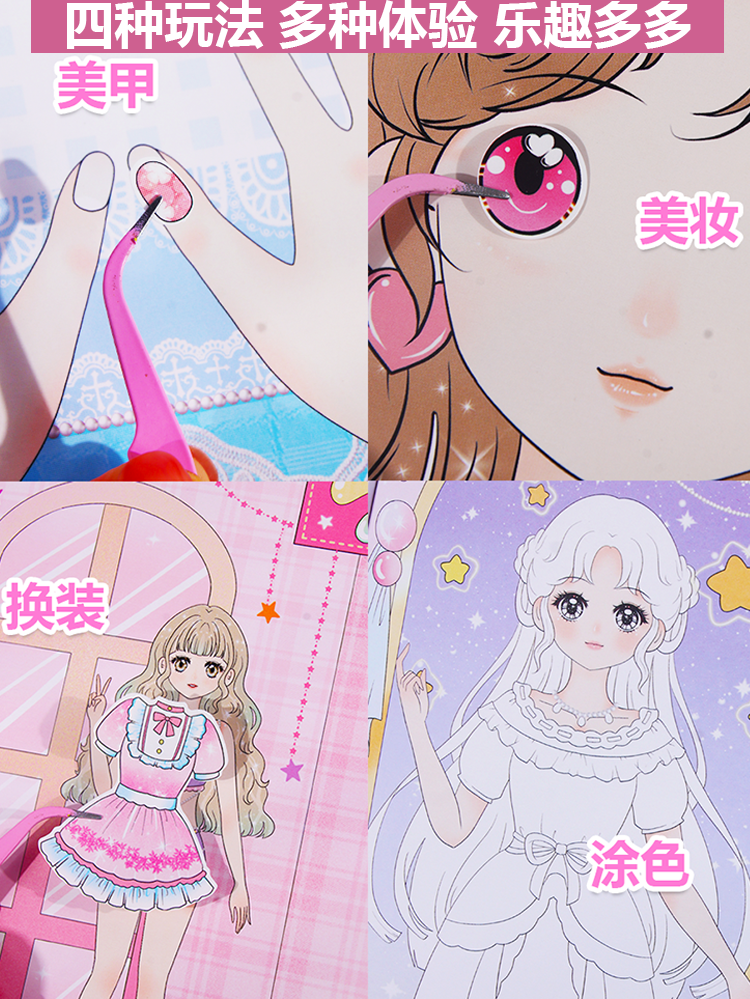 女孩换衣服美甲涂色化妆贴画本