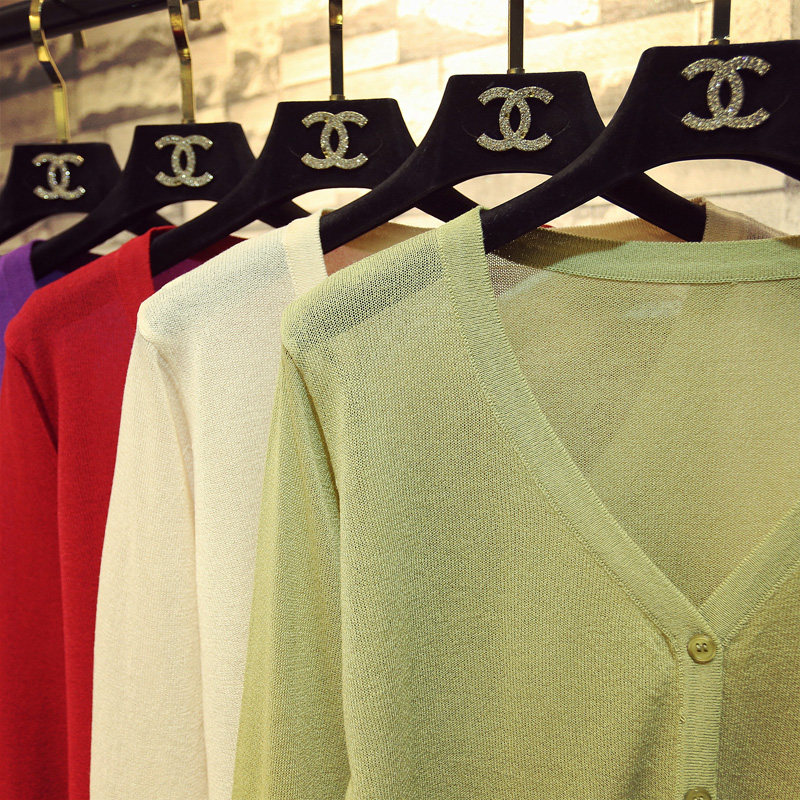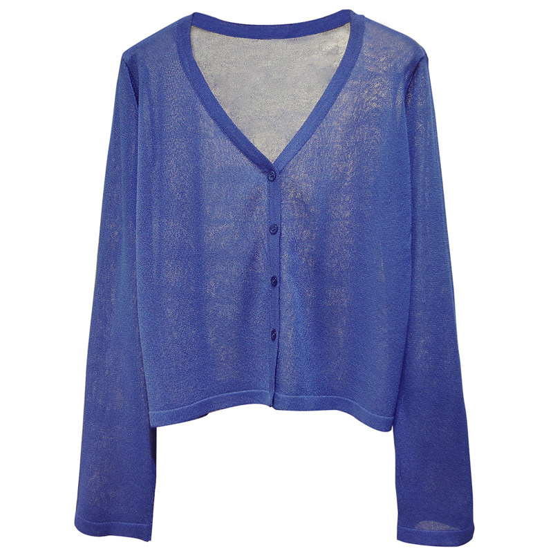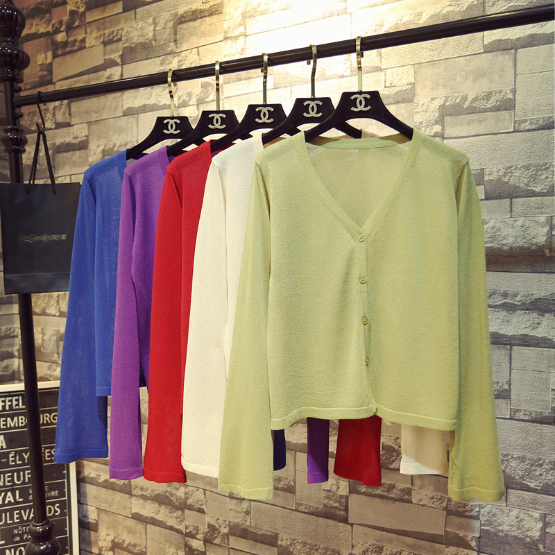 宽松v领冰丝薄款短款针织开衫
