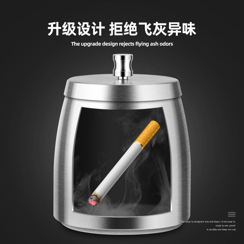 不锈钢烟灰缸防风潮流防飞灰创意带盖家用客厅烟味办公室盖子烟D